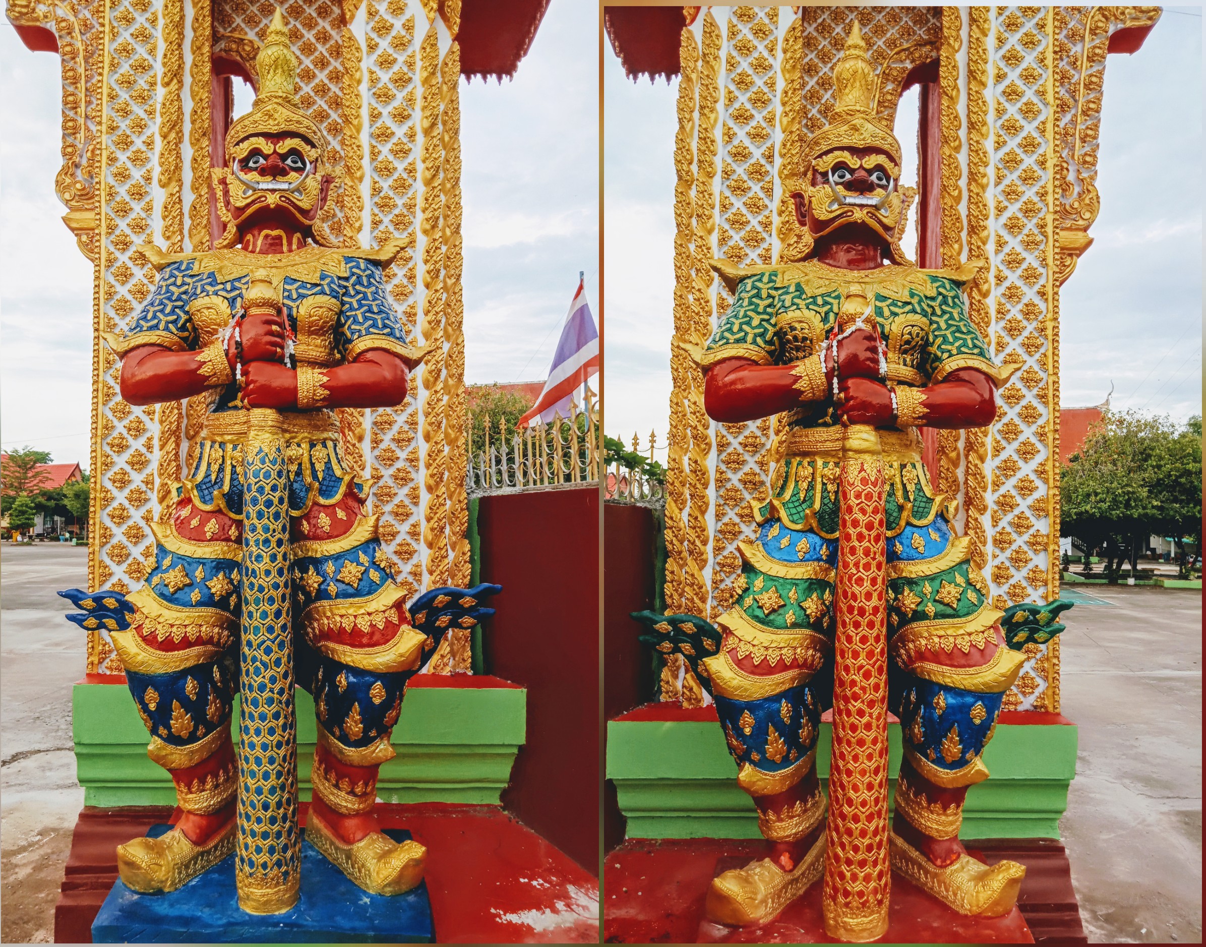 **ผมไม่รู้ว่าวัดที่เขานำรูปปั้นยักษ์มาไว้หน้ซุ้มประตูนั้นสื่อความหมายอะไร แต่ก็อ่านเรื่องยักษ์วัดโพธิ์วัดแจ้งมาบ้าง จำได้ว่ายักษ์วัดโพธิ์กับยักษ์วัดแจ้งทะเลาะกันเรื่องยืมตังค์กันแล้วไม่ใช้คืน ต่อสู้กันจนต้นไม้ปรักหักพังจนเตียน ชาวบ้านเรียกเขตนั้นว่าท่าเตียน และมียักษ์วัดพระแก้วเป็นผู้ห้าม