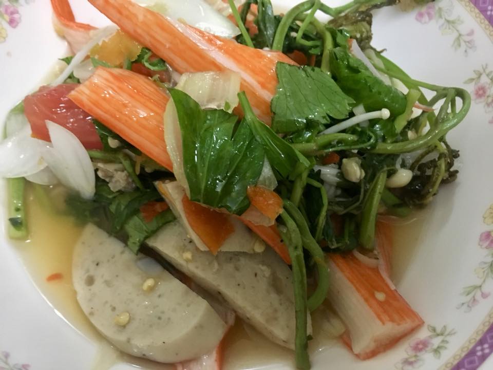 อ่า หิวววว ผักกะเฉด หมูยอ ปูอัด เราก็ใส่ไป ยำทีละเล็ก ๆ น้อย ๆ ค่อย ๆ กินไป ค่ะไม่รีบ
