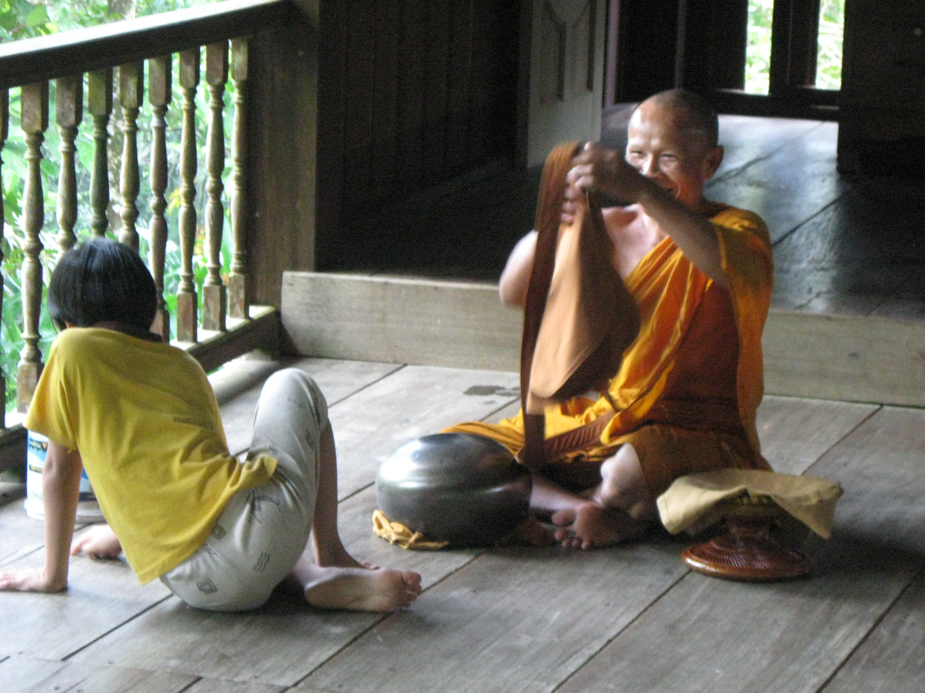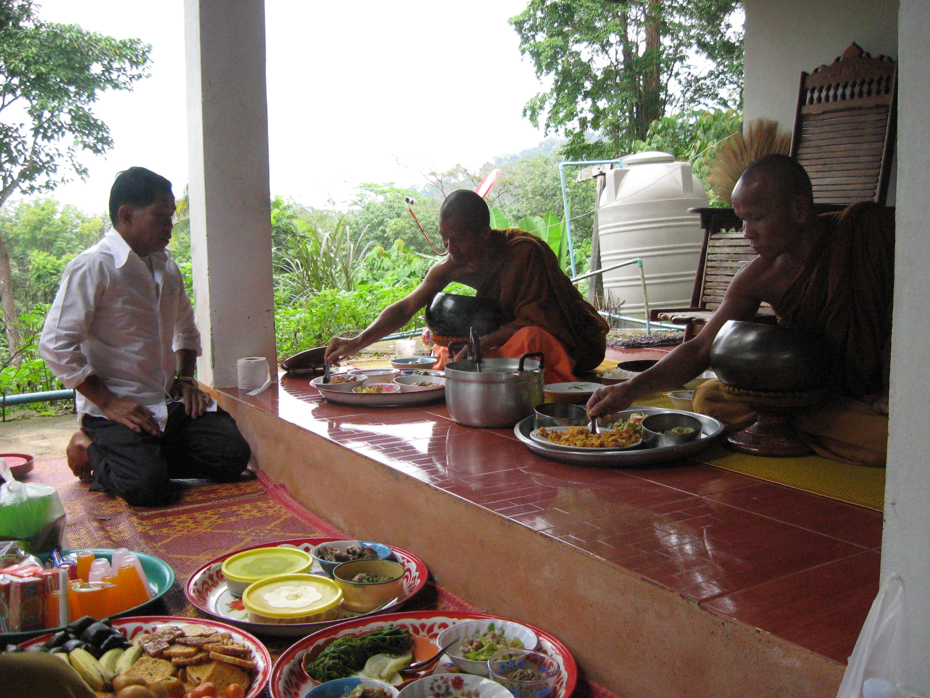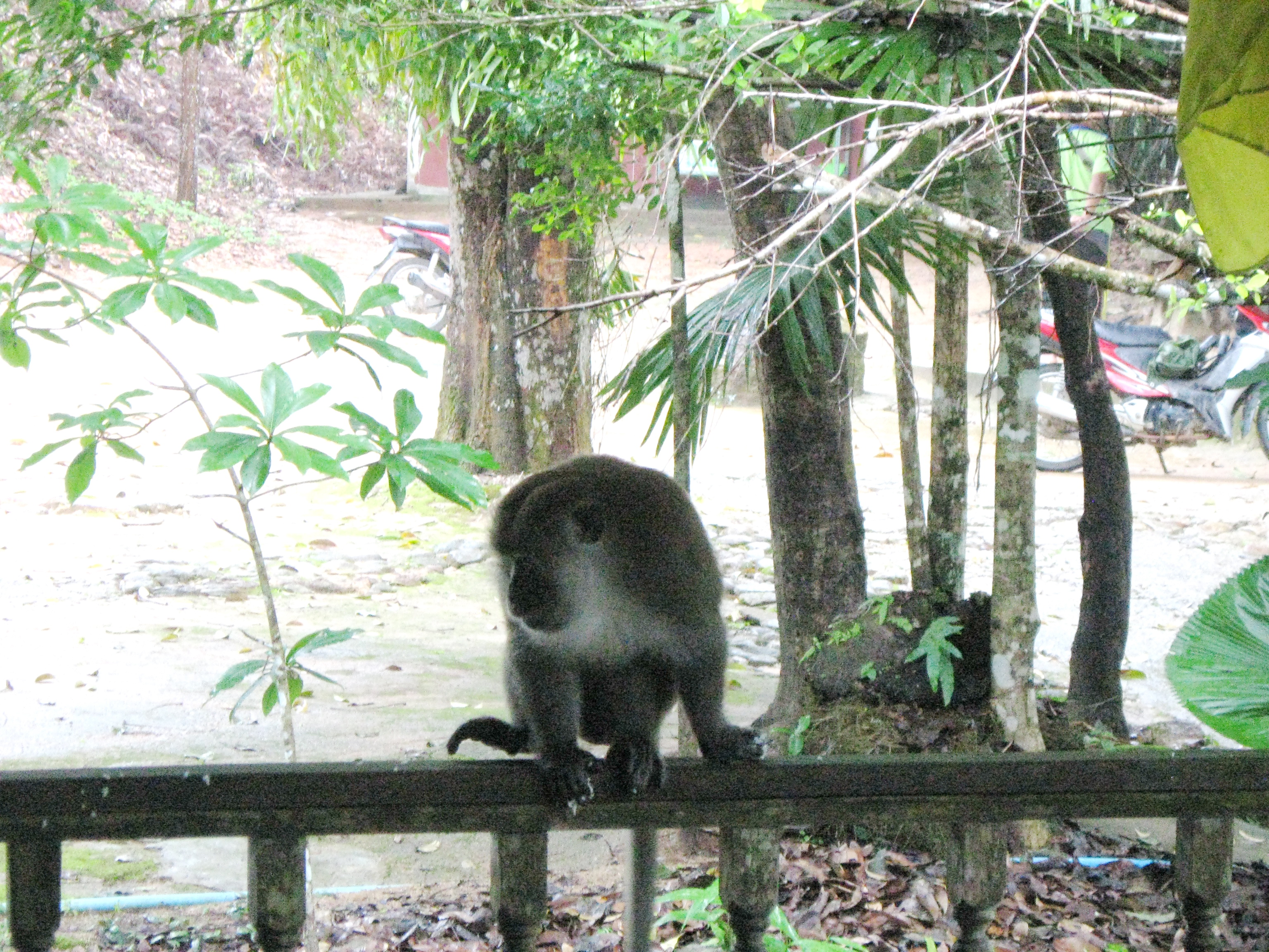 ลิงก็มาดูผมด้วยครับ มันมาแอบดูว่ามีอะ่ไรในบาตรรึปล่าว บางทีมันก็ขโมยอาหารแล้วก็วิ่งหนีไปเลยครับ
