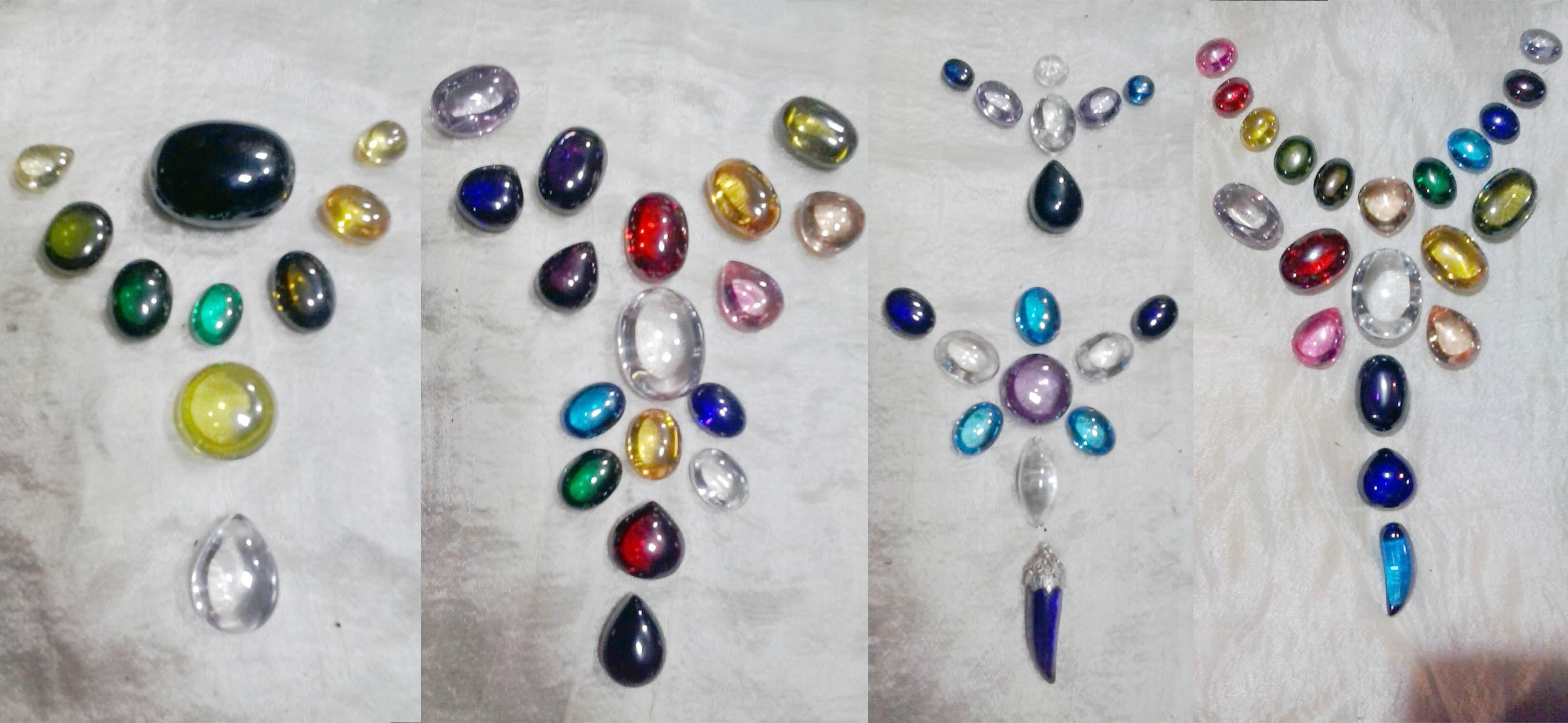เอามาเรียงกันดูครับ มันมีหลายสี บางอันก็เป็นหยดน้ำ บางอันก็เป้นเขี้ยว บางอันก็เป็นลูกกลมๆ บางอันก็เป็นดอกบัว