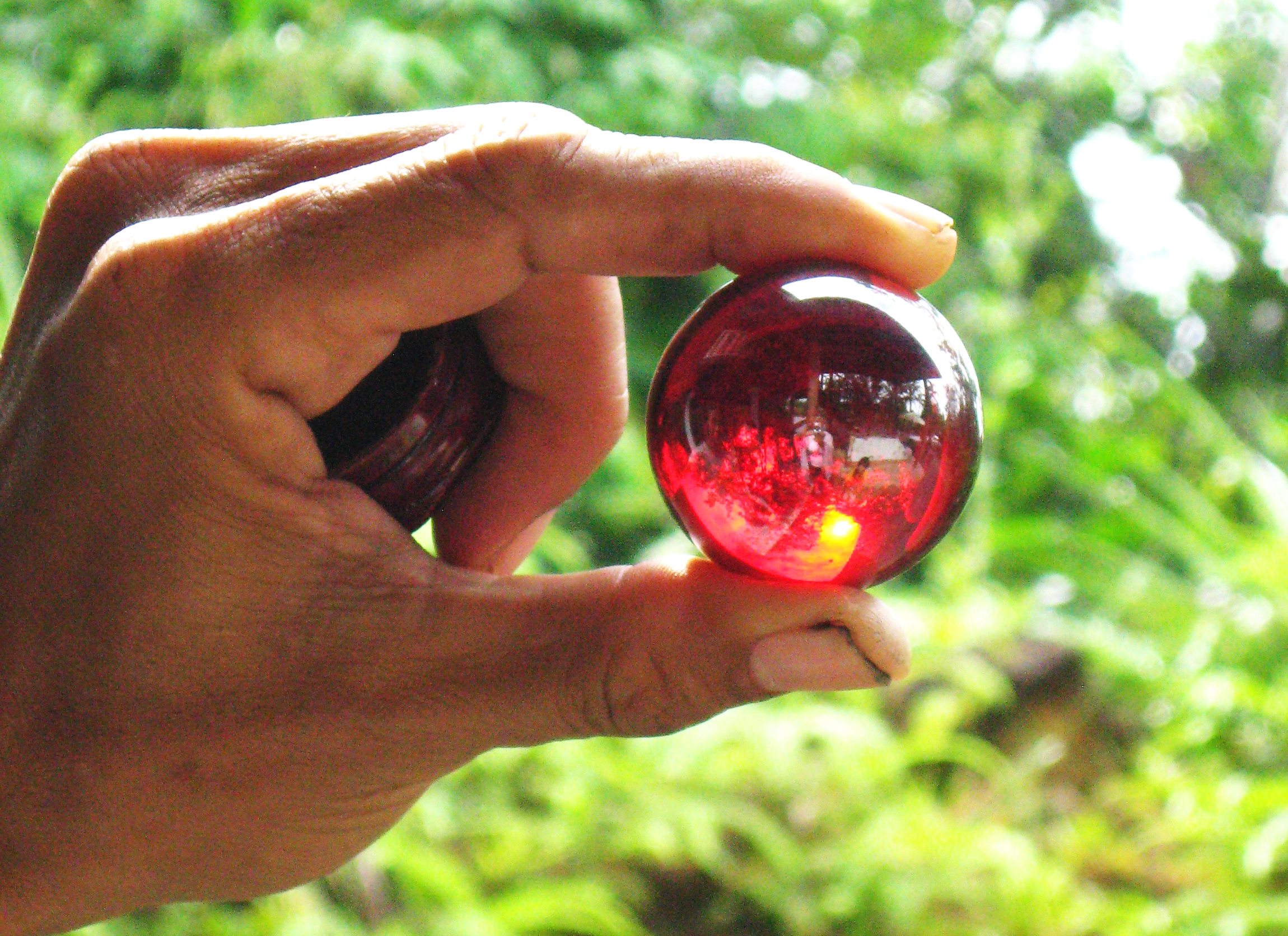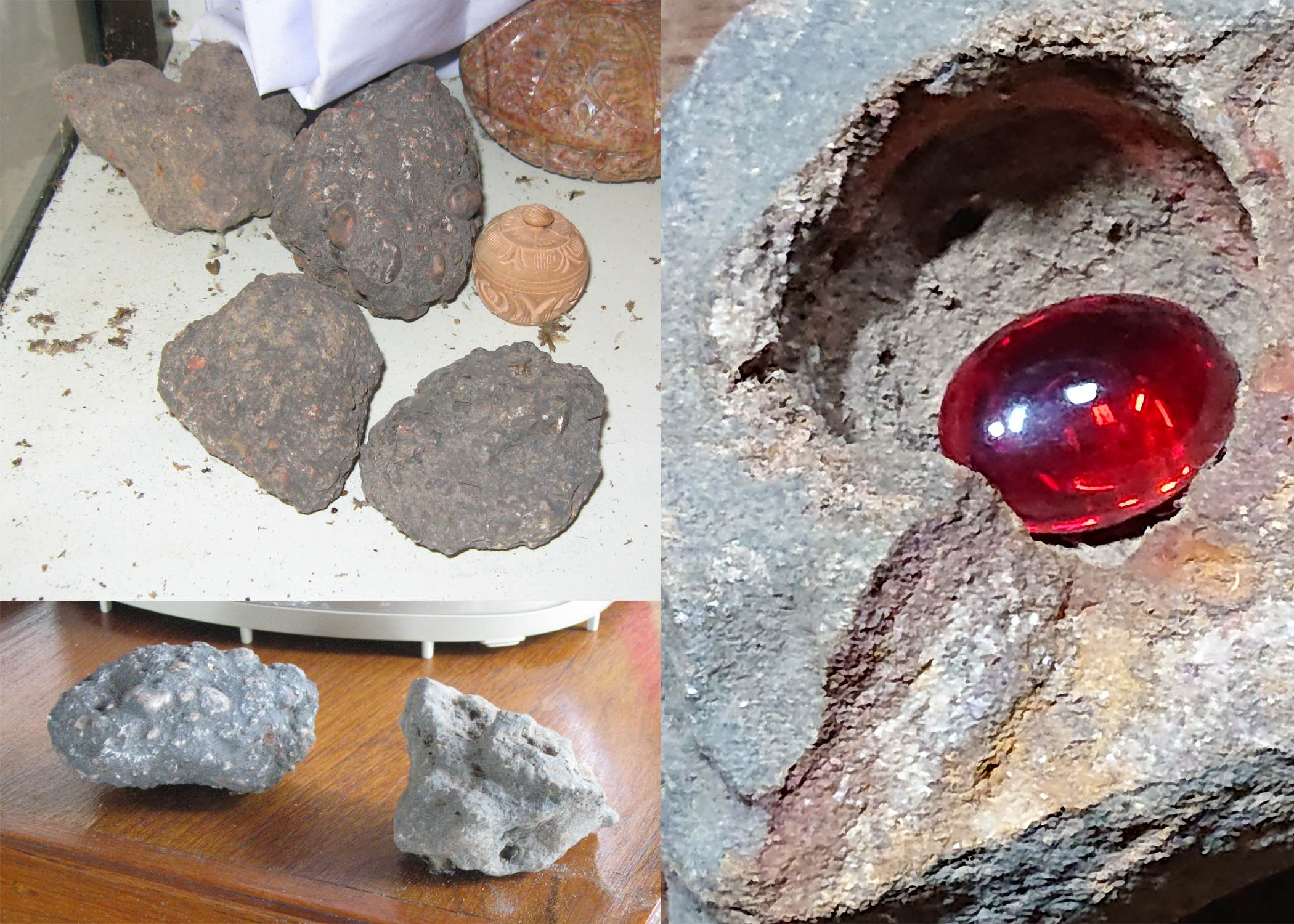 ชาวนครวัดจึงเอาดินมาพอกปิดพลอยไว้ เพื่อเคลื่อนย้ายไปซ่อนไว้ตามถ้ำ หรือทิ้งไว้ในลำน้ำโขงลูกแก้วสีแดงอันนี้ เรากระเทาะ