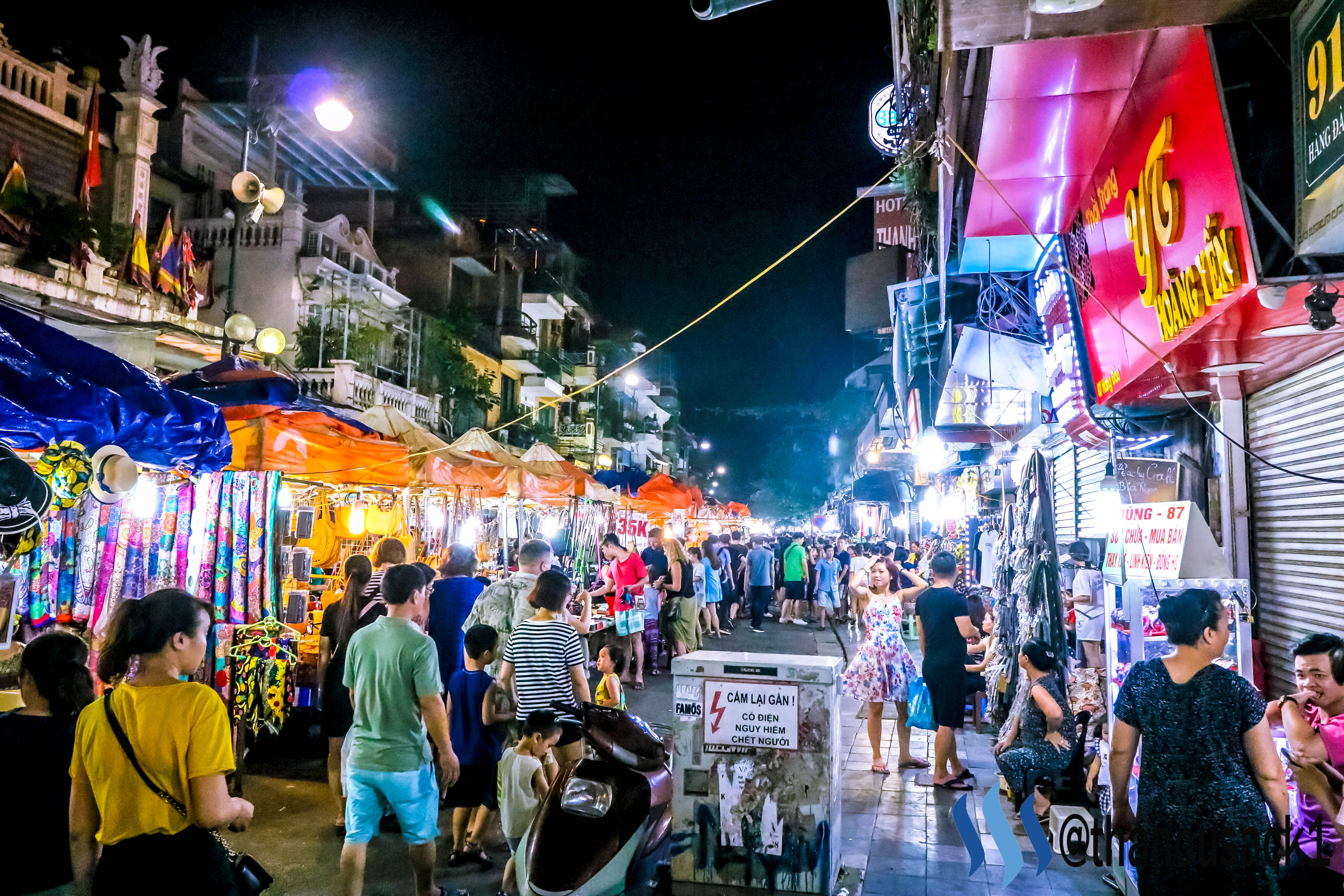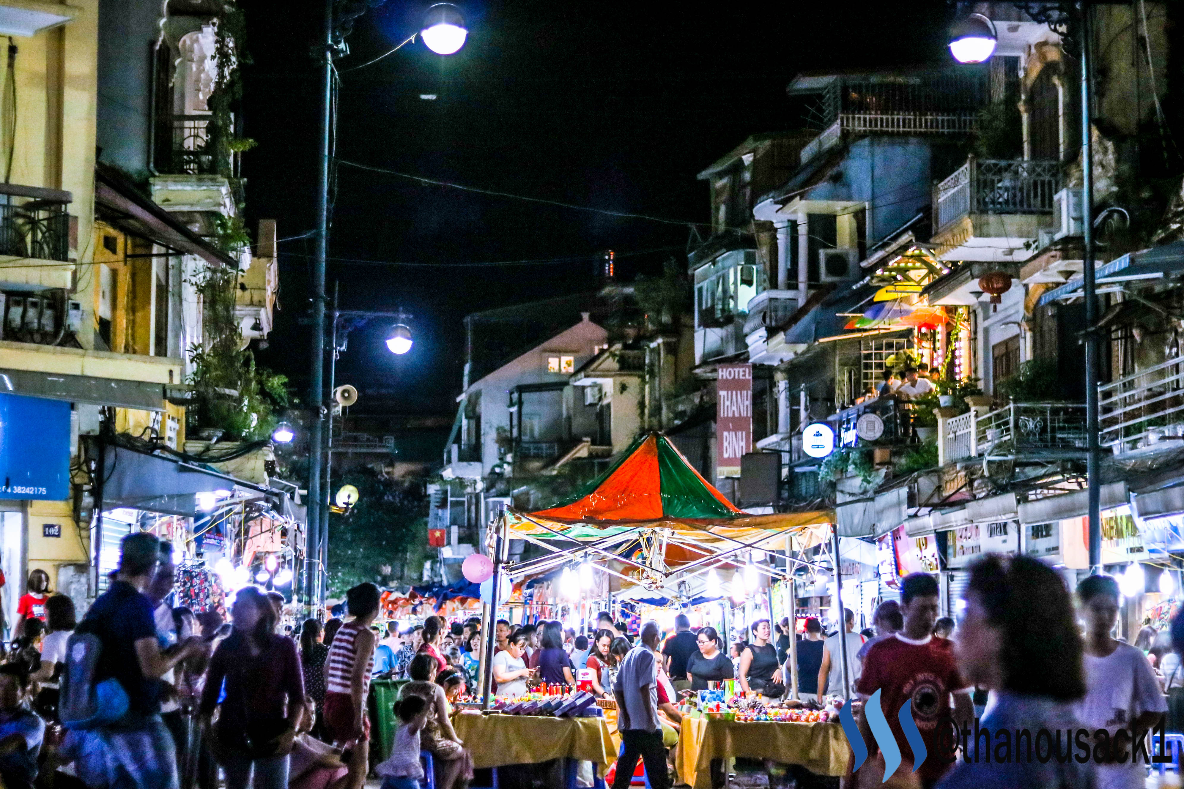 ตลาดกลางคืนจะอยู่ใกล้กับหนองหนองเต่าที่มีชื่อเรียก ho guom ซึ่งวันศุกร์วันเสาร์และวันอาทิตย์เขาจะปิดถนนที่ใกล้ที่ใกล้กับหนองและตลาดกลางคืนจะไม่ให้รถเทียวเข้าเทียวออกซึ่งเขาจะทำเป็นถนนคนเดินอย่างเดียวเลยซึ่งจะรับแดดนักท่องเที่ยวและก็คนเวียดนามสามารถไปวิ่งเล่น,ไปเดีนเล่นได้