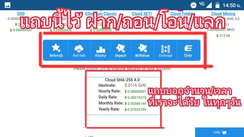 คือกำลังขุดครับ เป็นสิ่งจำเป็นที่สุดที่เราควรมี เพราะถ้าเราไม่มีกำลังขุด เราจะขุดสกุลเงินอะไรไม่ได้ เป็นลมหายใจในการทำเงินกันเลยทีเดียว โอเคครับ กดติ้กที่ช่องกลมๆ แล้วกดกลับหรือแตะหน้าจอ ส่วนไหนก็ได้เพื่อ ให้ออกจากตัวเลือก