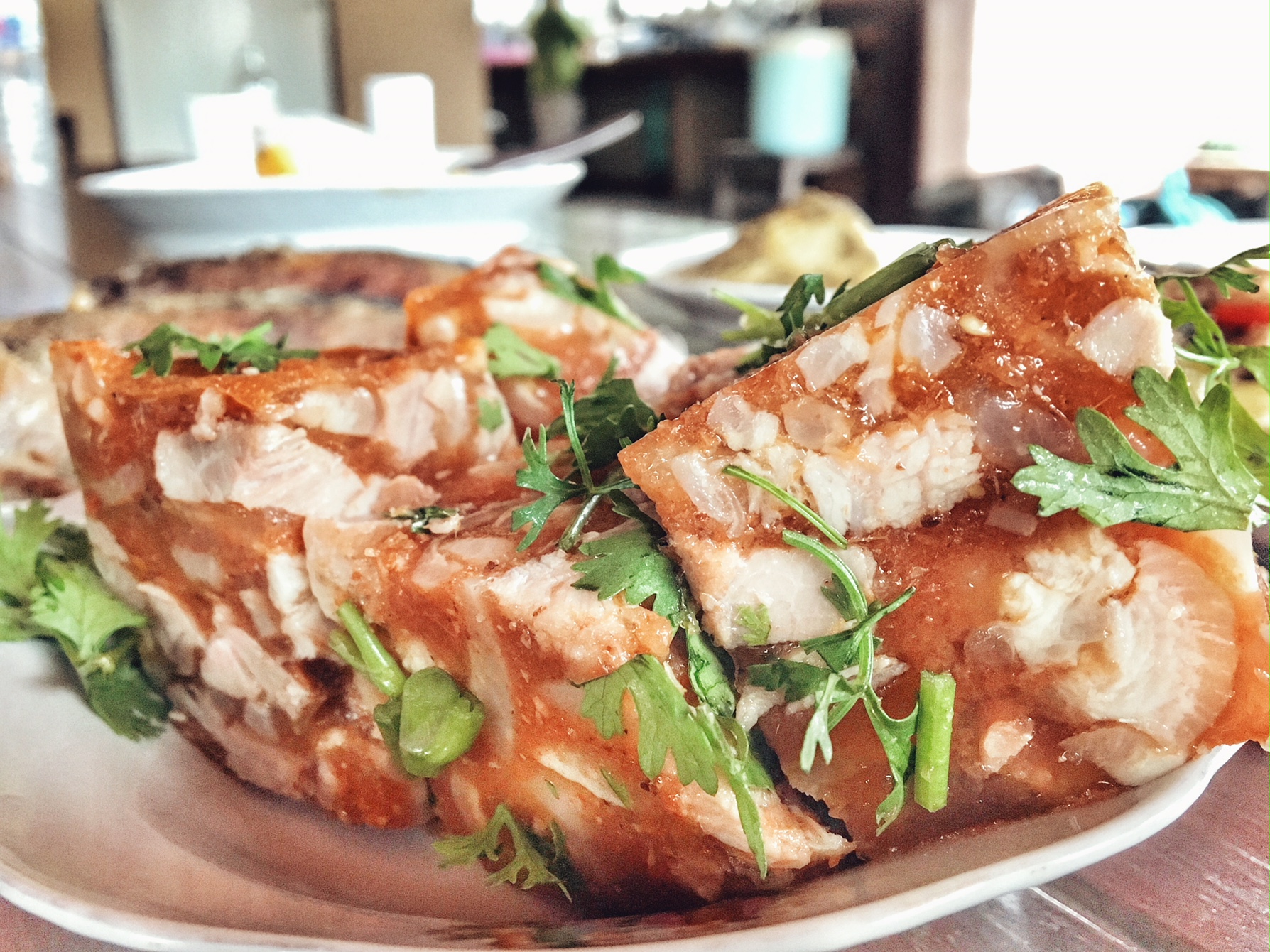 This old Lanna dish is normally eaten with sticky rice and usually eaten at breakfast time. The Lampang version has chili paste in it, giving it a darker color than the Chiang Mai recipe.
