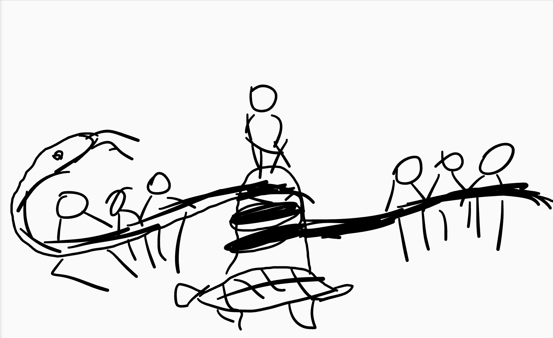 So this is a story from Hindu mythology where demons and gods are churning the ocean. The mountain is placed on the back of a turtle.