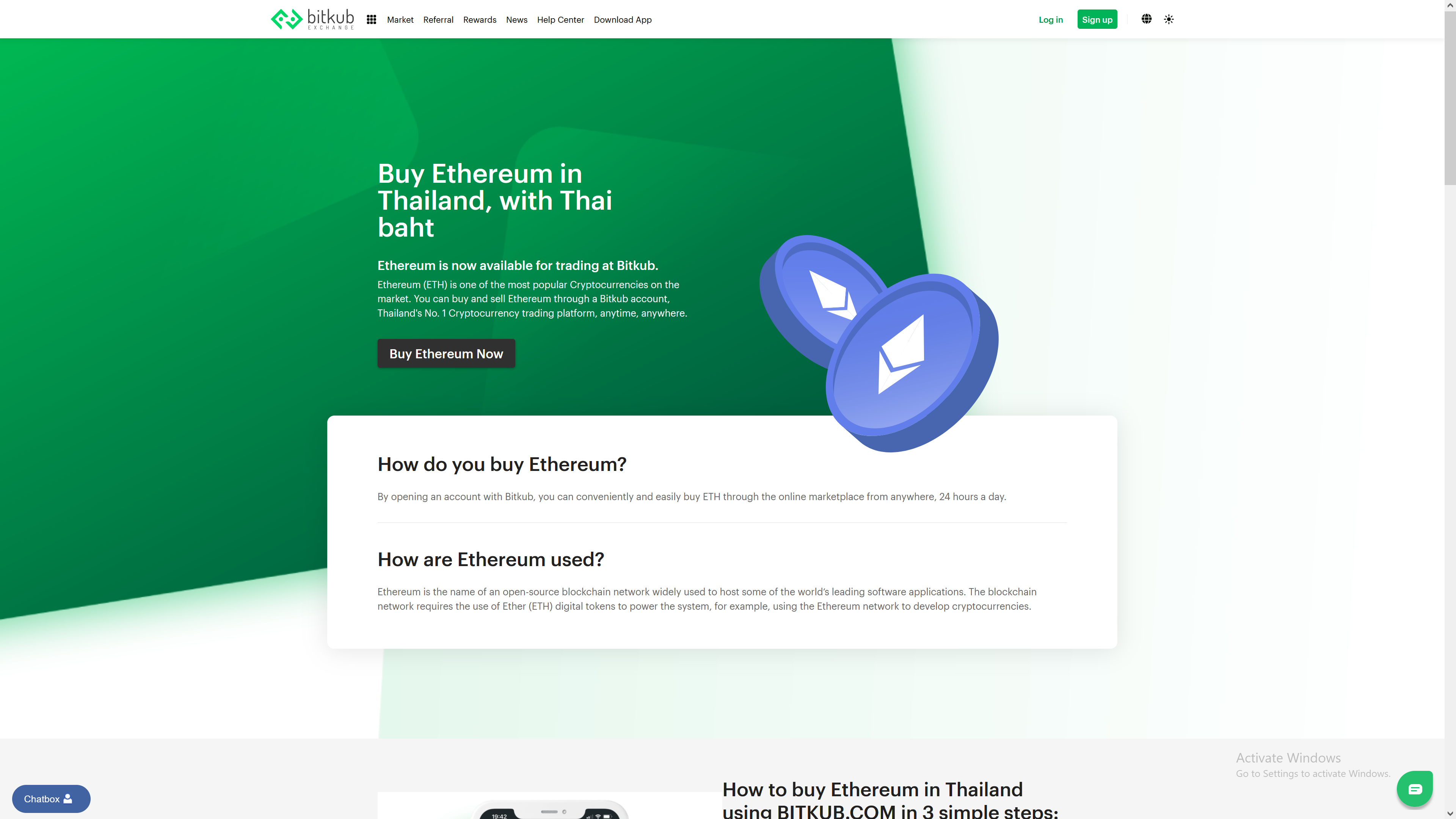 How do you buy Ethereum? in Thailand, with Thai bahtBy opening an account with Bitkub, you can conveniently and easily buy ETH through the online marketplace from anywhere, 24 hours a day.How are Ethereum used?Ethereum is the name of an open-source blockchain network widely used to host some of the world’s leading software applications. The blockchain network requires the use of Ether (ETH) digital tokens to power the system, for example, using the Ethereum network to develop cryptocurrencies.start trading here https://www.bitkub.com/signup?ref=72957 Buy Ethereum in Thailand, with Thai bahtEthereum is now available for trading at Bitkub.Ethereum (ETH) is one of the most popular Cryptocurrencies on the market. You can buy and sell Ethereum through a Bitkub account, Thailand's No. 1 Cryptocurrency trading platform,