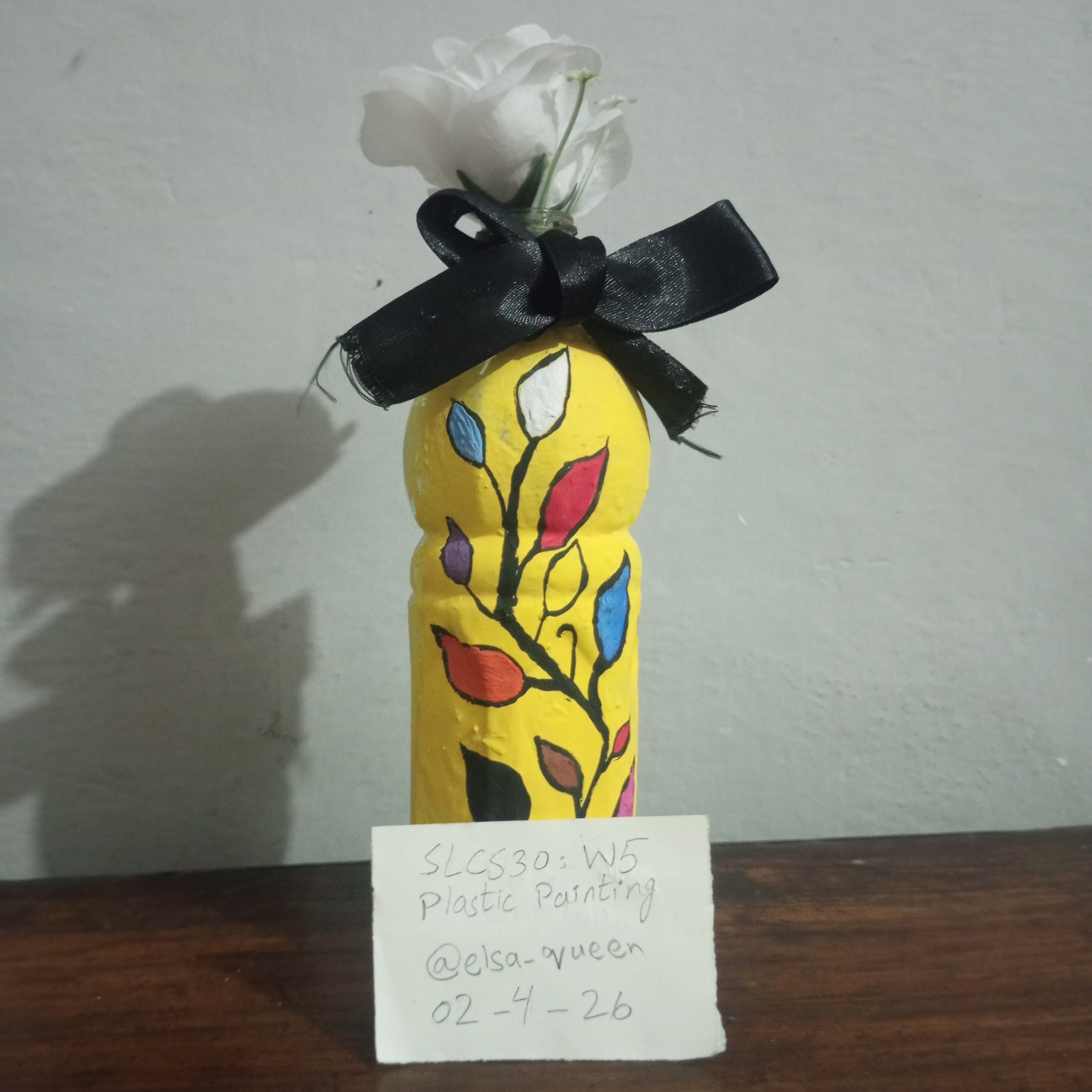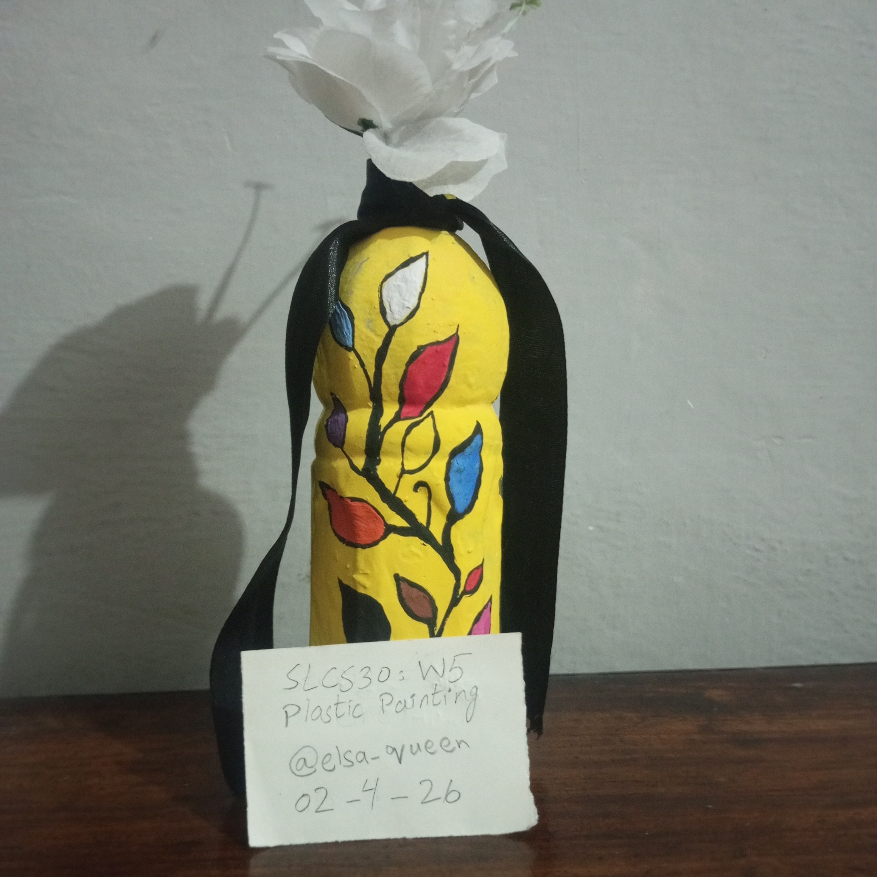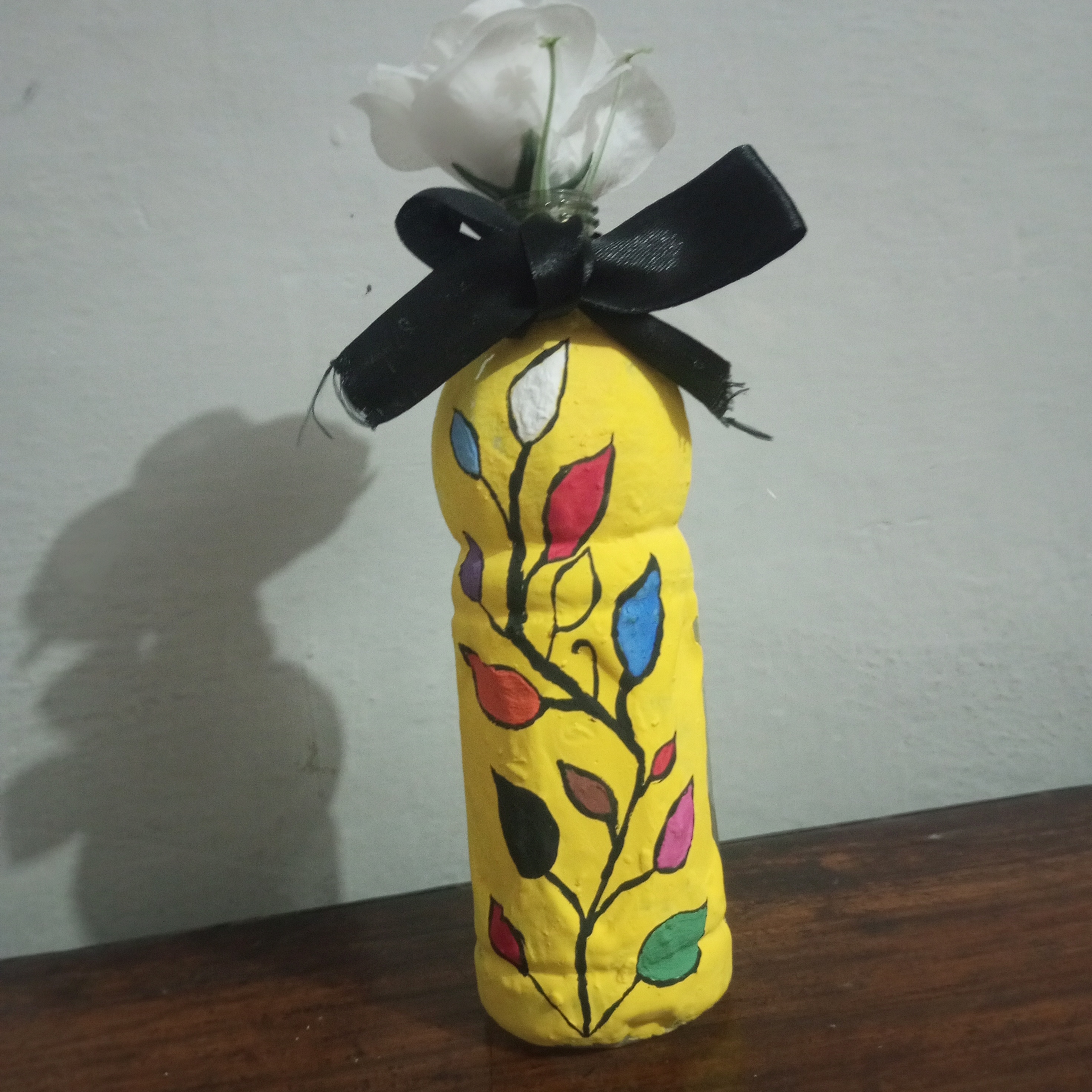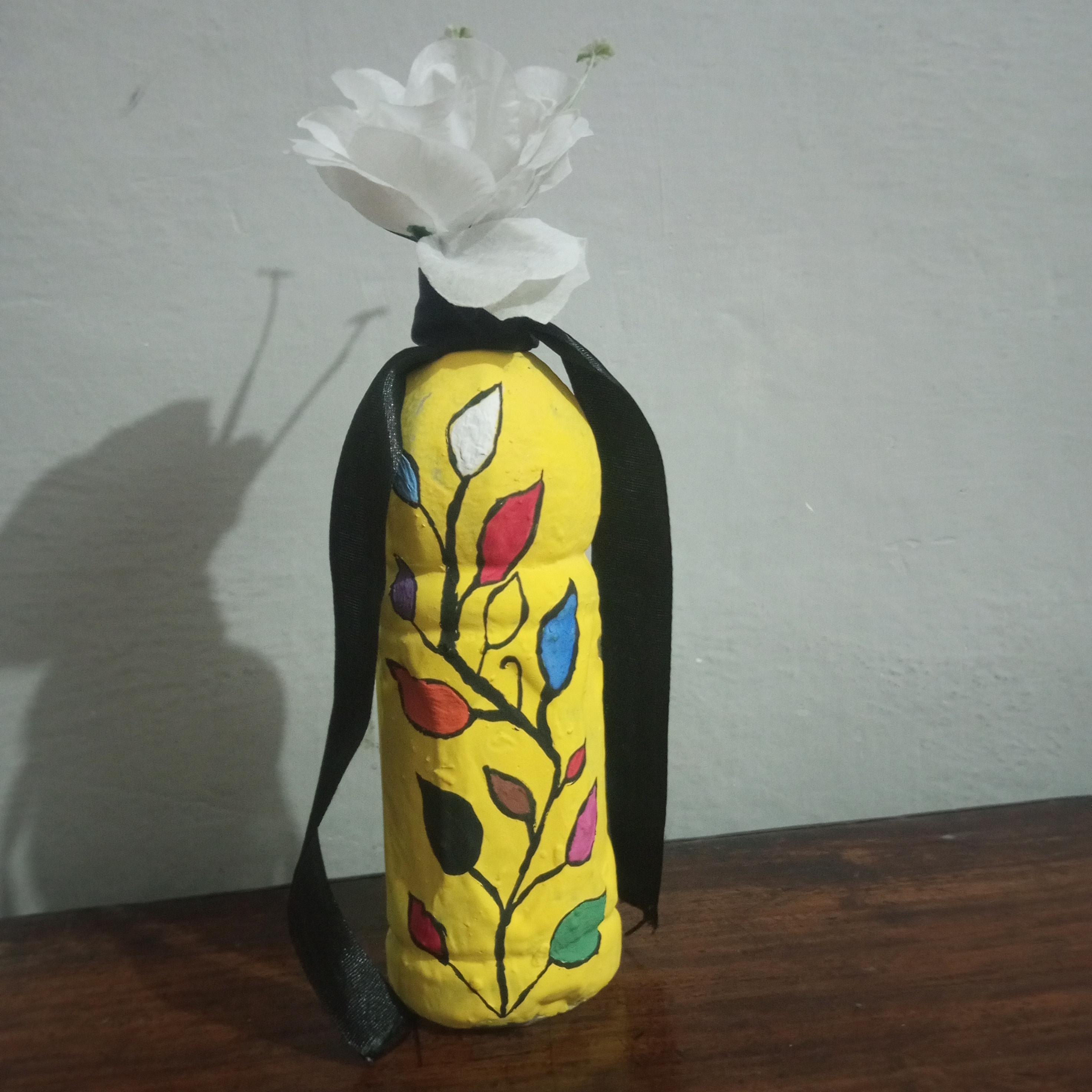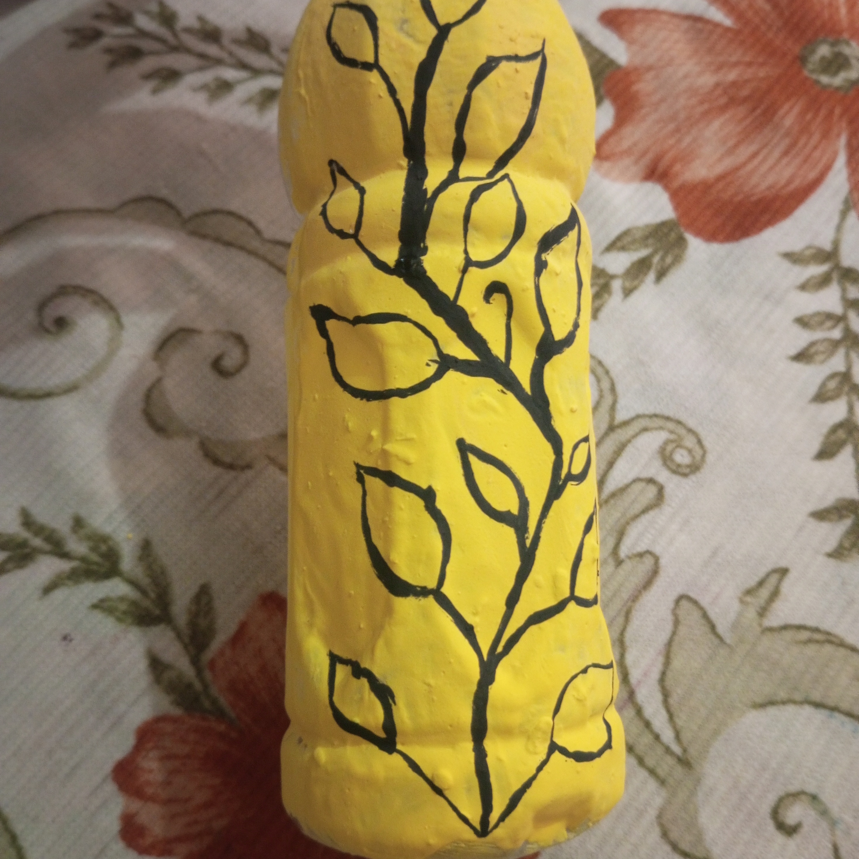No I did not face any great difficulty during this painting. Although painting on a plastic bottle was a new experience for me. I managed to complete it easily. I worked carefully step by step and completed each step with patience. Everything went smoothly from the yellow base to the different colors of the branch, leaves and finally the leaves. With focus and hard work. I am able to complete the painting successfully. Overall it was a pleasant and creative experience.