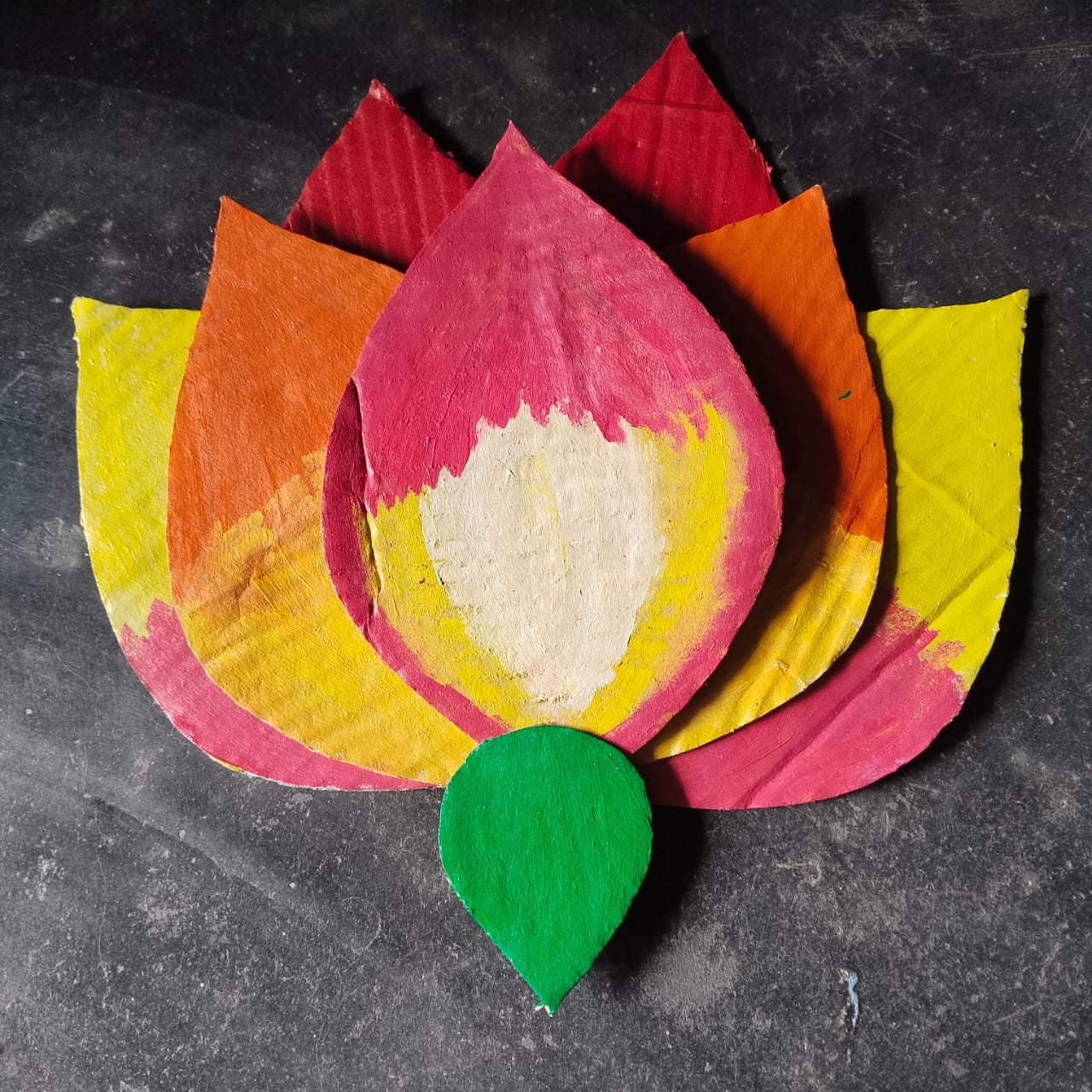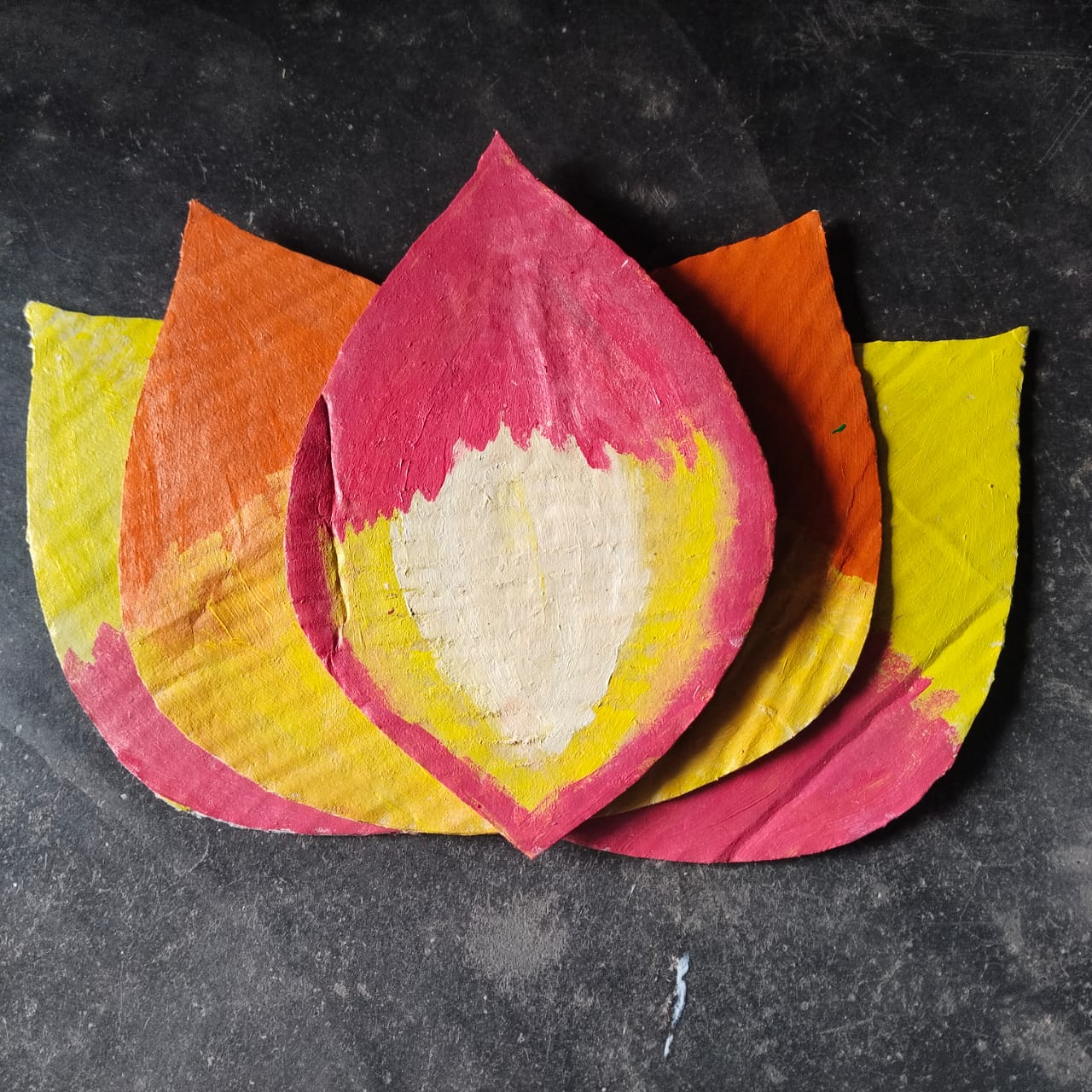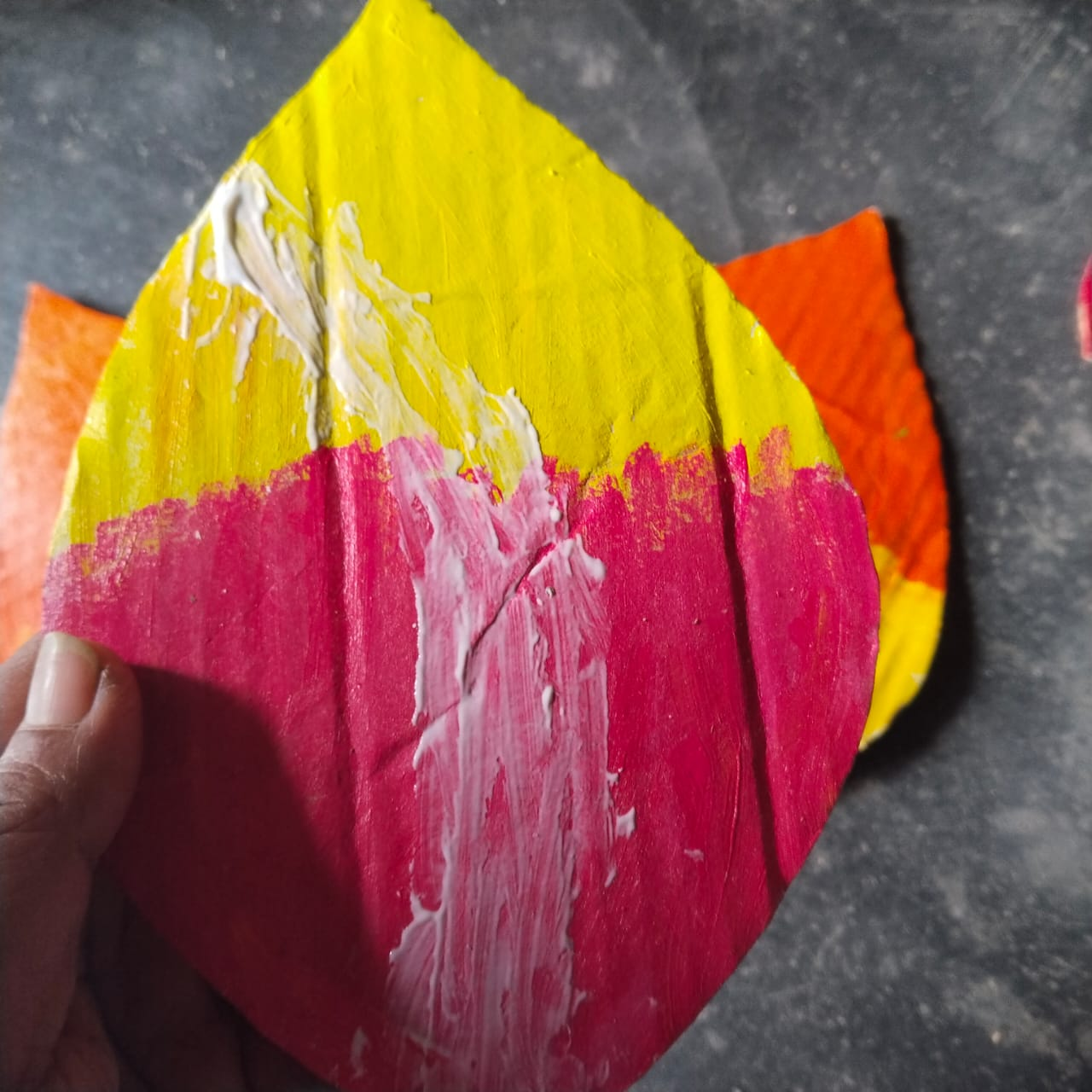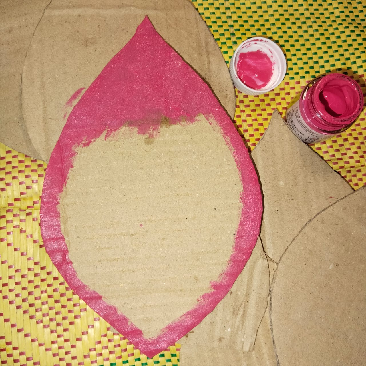 Step-3: Once all the petals are cut, start coloring all the petals. For the lotus flower, cut a total of 5 large petals and 2 small half petals and color them, and color 1 leaf.