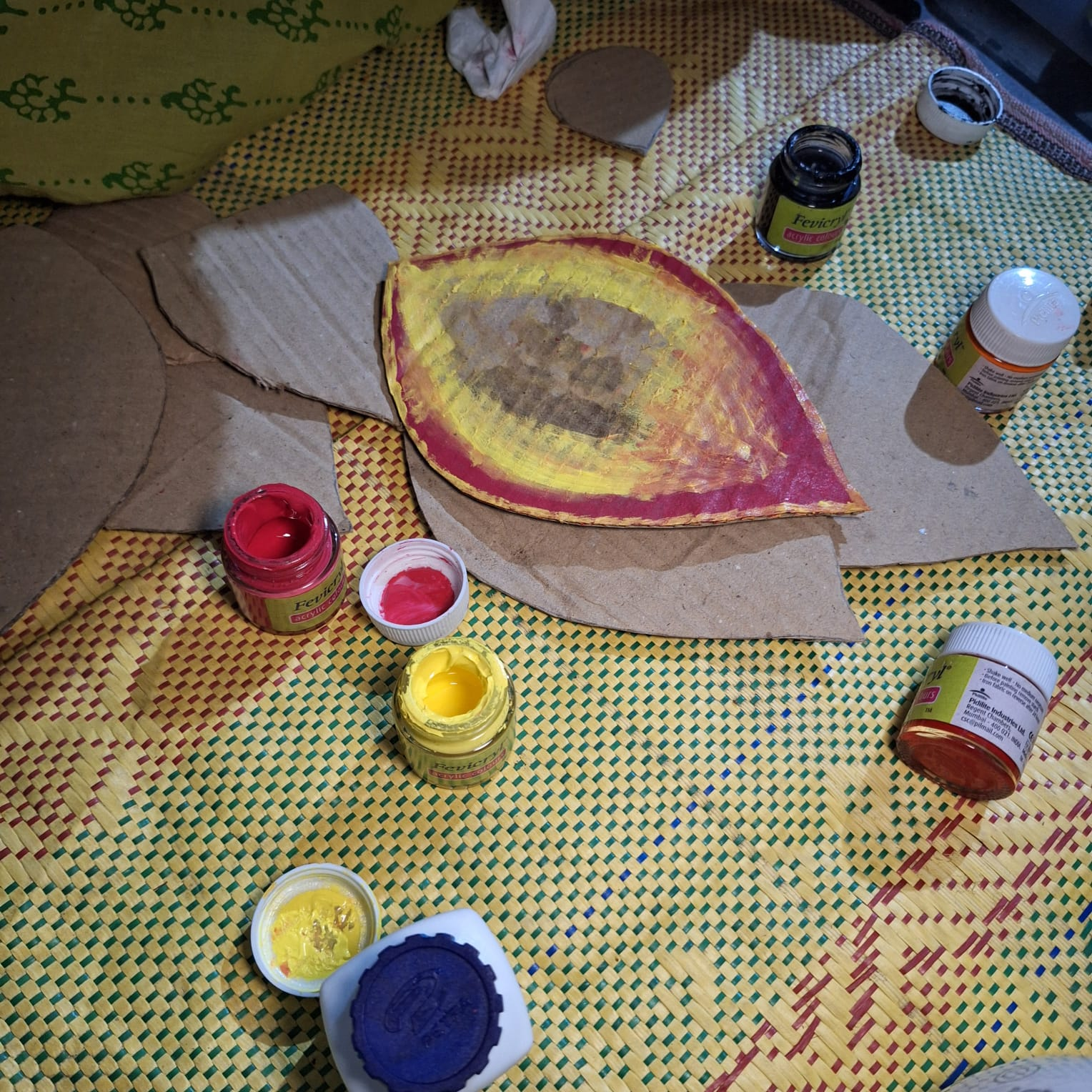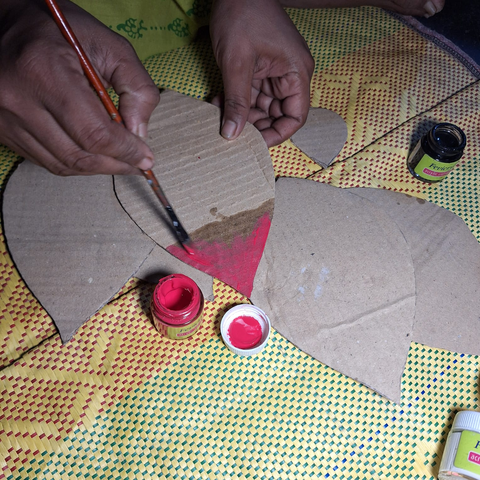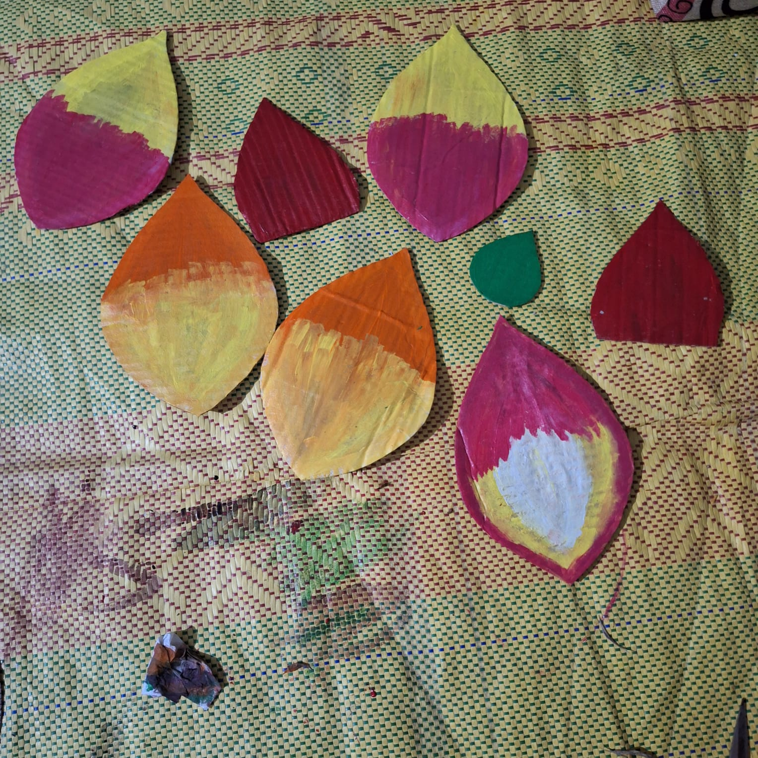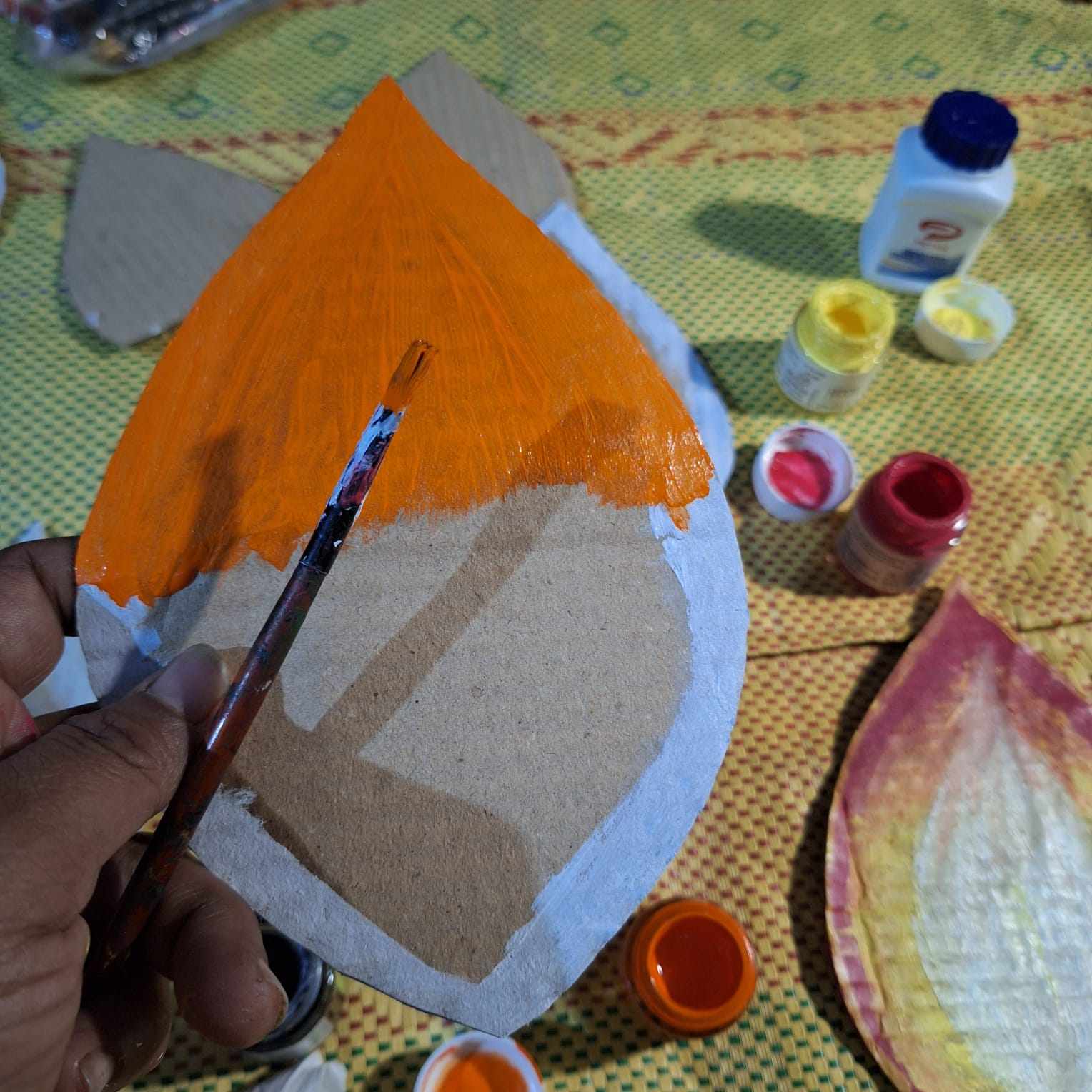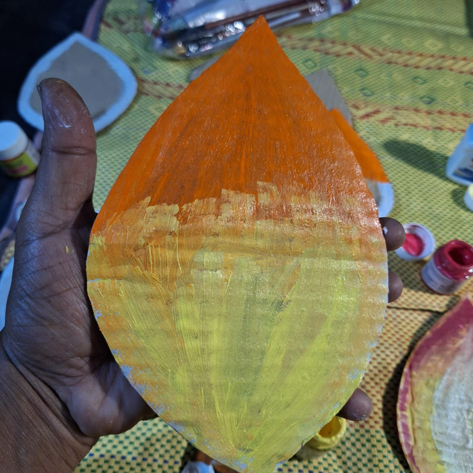Step-3: Once all the petals are cut, start coloring all the petals. For the lotus flower, cut a total of 5 large petals and 2 small half petals and color them, and color 1 leaf.