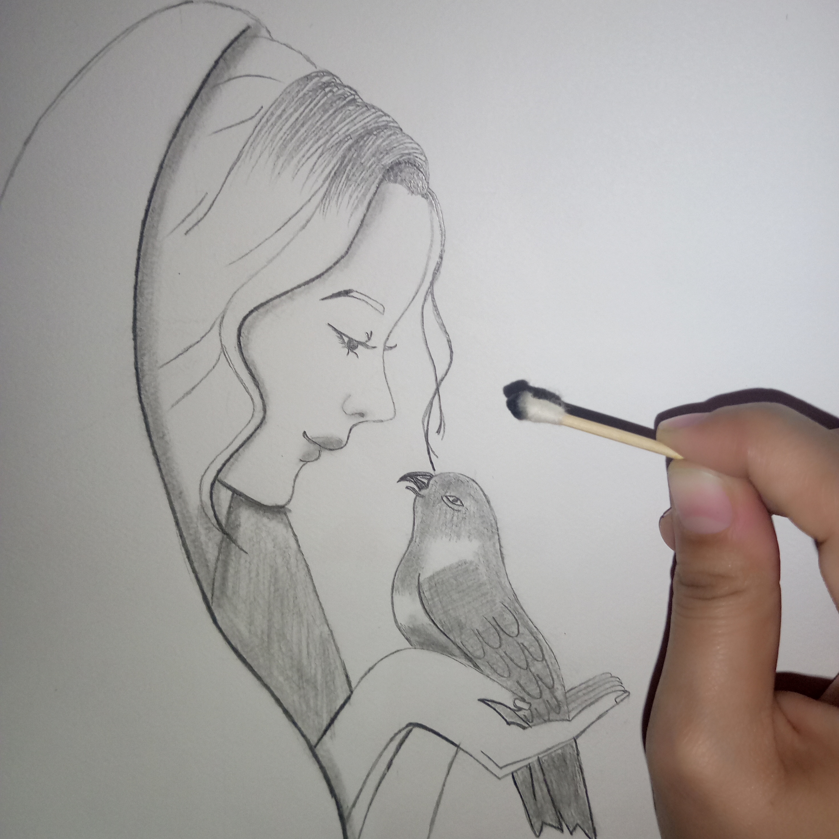 A hearty welcome to all the wonderful steemians on my blog. I hope all of you is doing well and enjoying a peaceful day. Today I am happy to share a pencil drawing with you guys. I recently created with a lot of effort. I have a great love for art. In my drawing I tried to show a beautiful and calm moment guys. A girl is gently holding a little bird in her hand. This drawing represents kindness, peace and the lovely bond between the humans and the nature. I hope you will like my drawing and appreciate my small effort. Thank you for visiting my blog and supporting my work dear steemians.