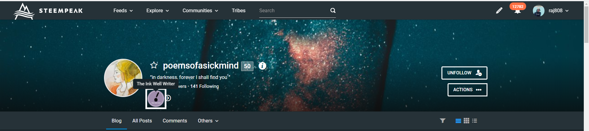 These badges are displayed at the top of the homepage of your blog on steempeak only, another reason to use the fantastic steempeak front end. The Ink Well's badges are currently awarded to anyone who has posted to the community in accordance with our rules and guidelines.