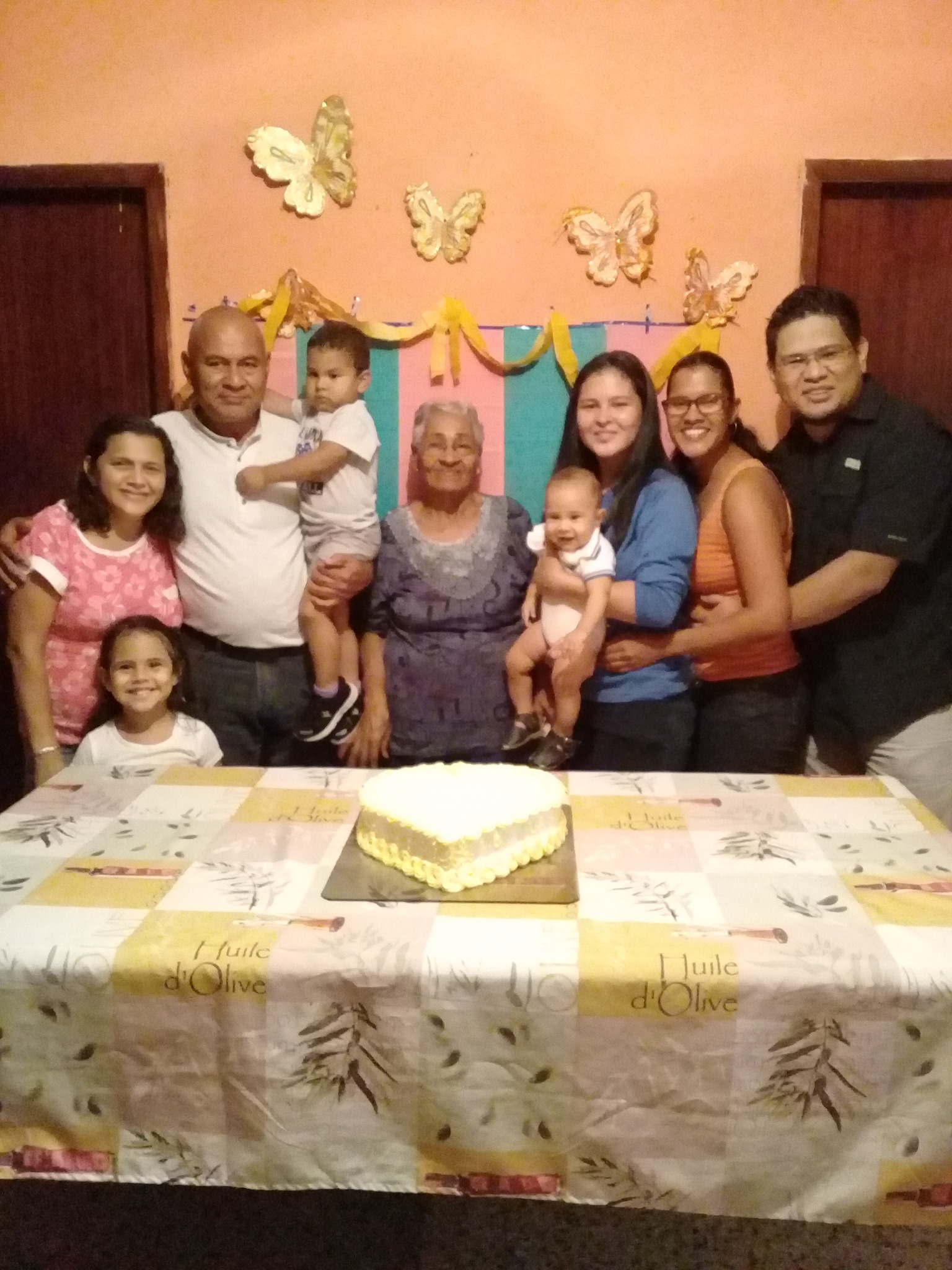 Mis padres, mi esposo, mis hijos y mi abuela el día del cumpleaños de mi abuela