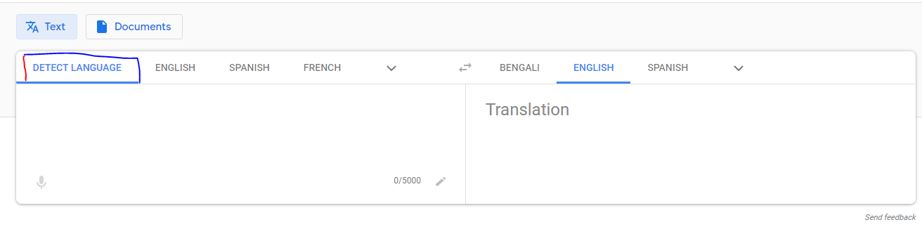 The most common use of google translator is select text you want to translate then copy it after that go here.If you are not sure which language you are trying to translate keep from langue "DETECT LANGUAGE" and To Language 'ENGLISH".