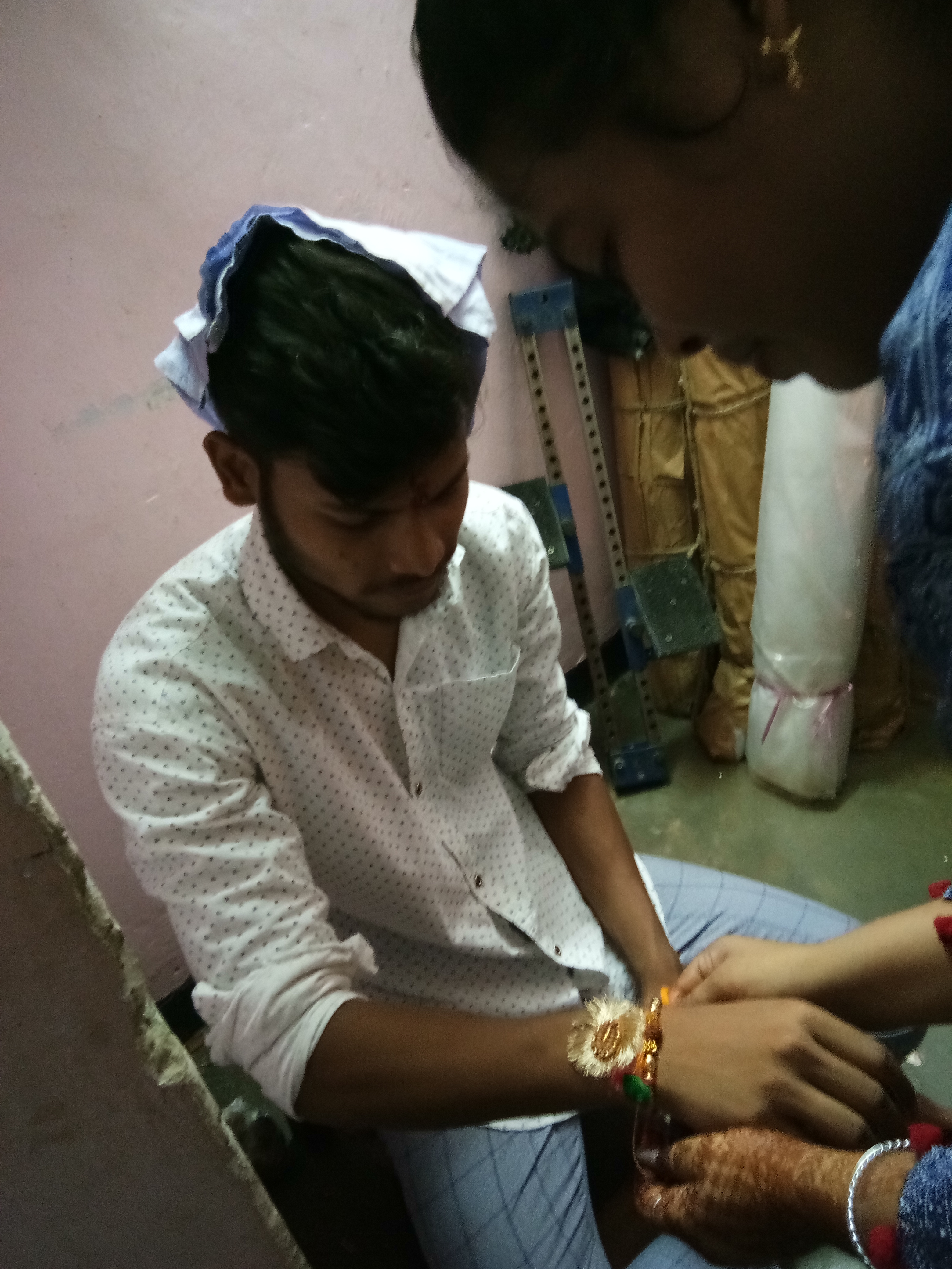 Then I tied Rakhi on my younger brother wrist. Raksha Bhandan is the festival in which all sister used to tie Rakhi on her brother wrist . This year because of this covid19 I was not able to send Rakhi to my cousins brothers 😥. Then after that my younger brother gave me a gift 😊😊😊.
