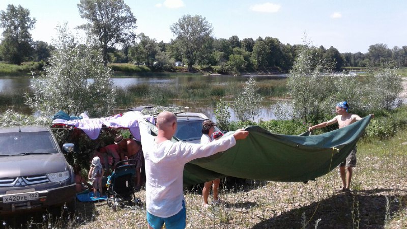 🔥Отдыхали в течение 4 часов, укрытие от солнышка создали объединив машины, детей было немало, у которых еще золотое детство и с упоением плескались на речке, за некоторыми нужен был глаз да глаз. После разбрелись кто куда и решили ехать в Уфу только поздно вечером, чтобы спала жара и не попасться на пробки. Стартанули в 21.30.