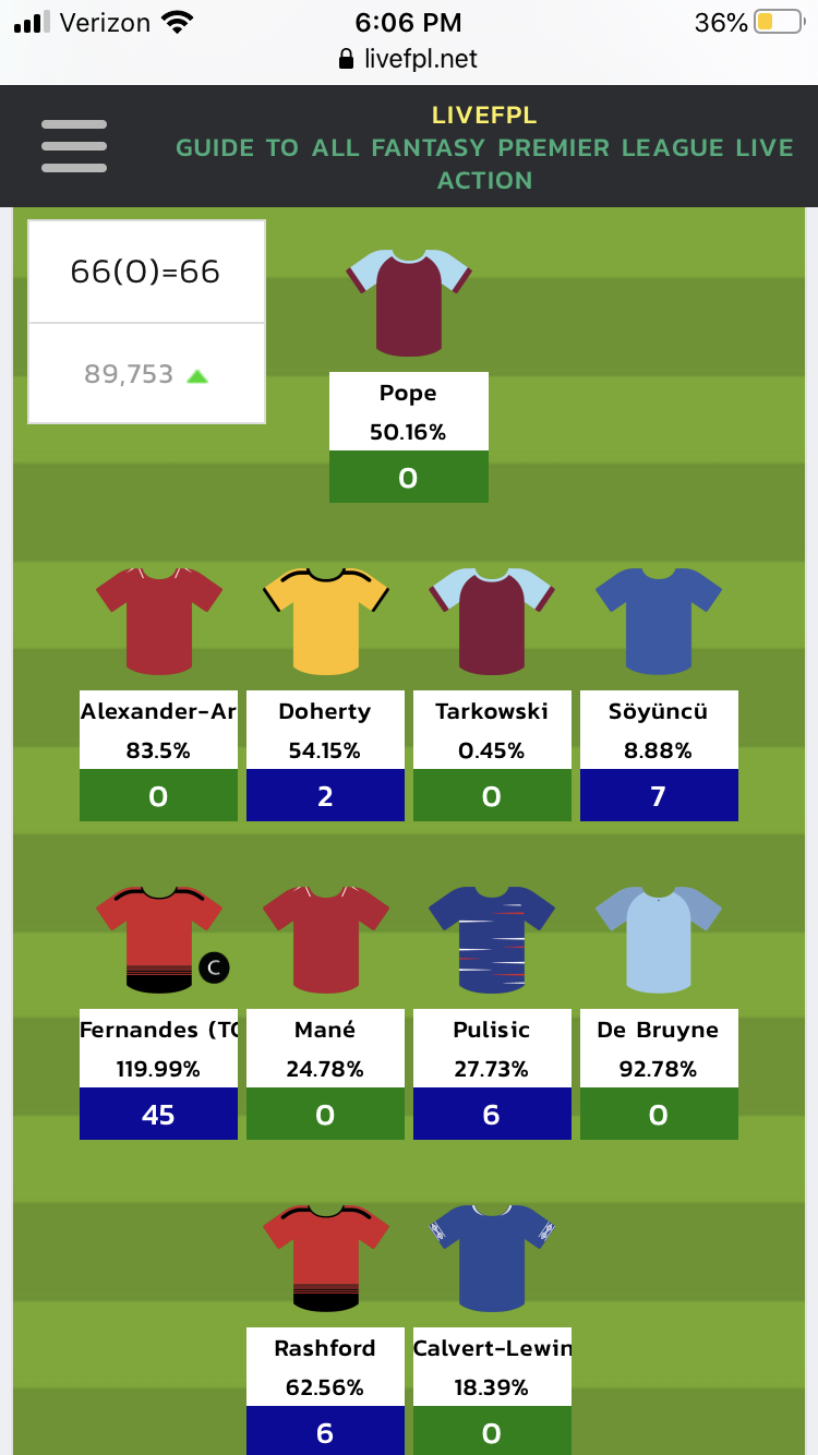 I checked how my fantasy team performed at 6. As I stated in a diary entry a few days ago, I used my triple captain chip. The player who I captained, Bruno Fernandes, scored 15 points, and due to the chip, his 15 points was multiplied by a factor of 3 to give me 45 points for him this matchweek. I have 66 points total so far this gameweek and have finally cracked the top 100K in terms of overall ranking. I still have 6 players yet to play, so maybe I will finally get over 100 points in a single week.