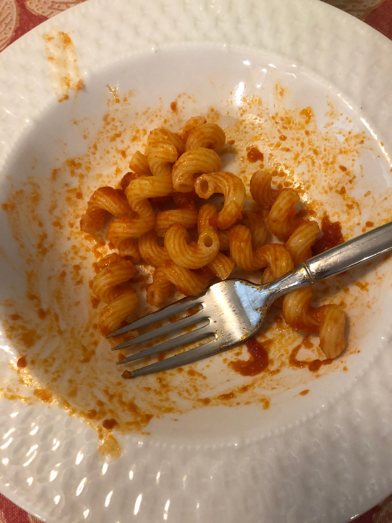 My family and I had an early dinner tonight at 6 because my mom had to pick up a curbside grocery order at 7. She made pasta with tomato sauce. I cannot remember what type of pasta it was for the life of me, but I promise it tastes as good as it looks! We also had red grapes and spinach as the sides.