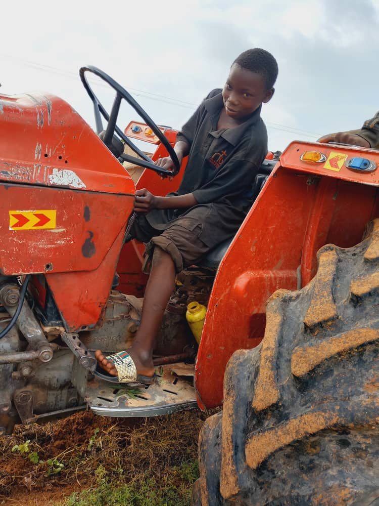 Upon my arrival at home I heard the sound of a tractor nearer to my place but didn't give it any attention for I was very hungry at the moment. I finished my poridge and my slice of bread and wanted to take a rest it I could still hear the noise of the tractor so I decided to have a look at what's happening there, to my amazing I saw a little boy drive and ploughing a plot of land for cultivation.