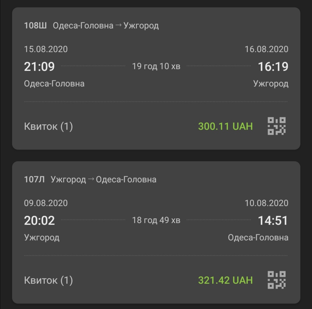 А вот вернувшись домой я сделала наконец то, что необходимо было сделать еще дня два назад - купила билет на поезд. Дада, через неделю я уезжаю в Одессу, чтоб провести там время, отдохнуть, увидеть море и отвлечься от обычных серых будней. Огромный минус, что я так поздно выбрала себе билет это отсутствие нижних полок :( но, я сразу купила в обе стороны. Обошлось мне это в 621 гривну / 22.41 USD / 105.32 STEEM.