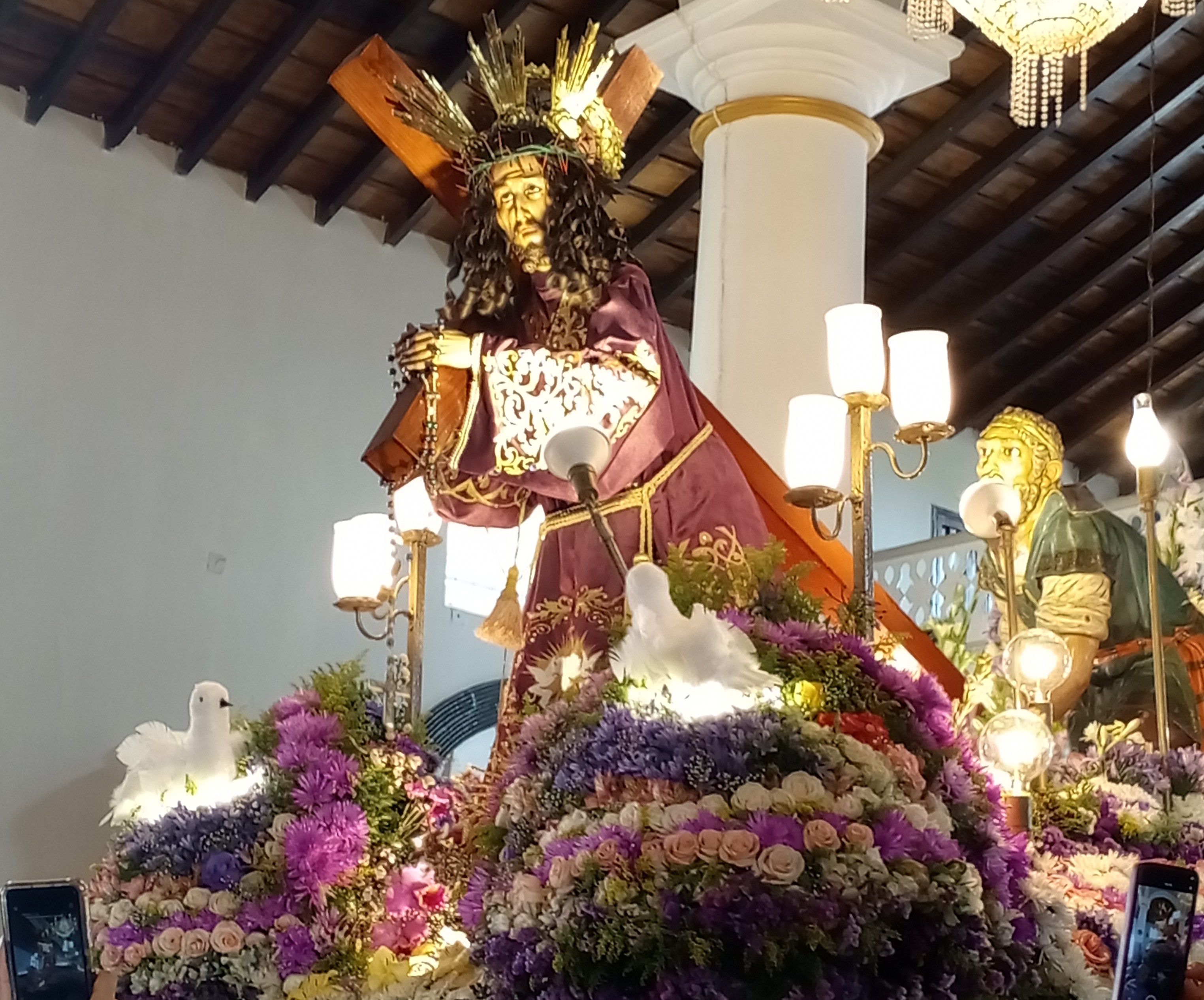 El día estuvo bastante caluroso y cuando la imagen llegó a la iglesia, entre aplausos, globos y fuegos artificiales, recibieron a la imagen del Nazareno. No me quedé por completo a la misa para no tener que regresar sola a casa, pero el Padre habló de algo muy cierto, que este era un año para agradecer y para pedirle Dios por nuestro país.