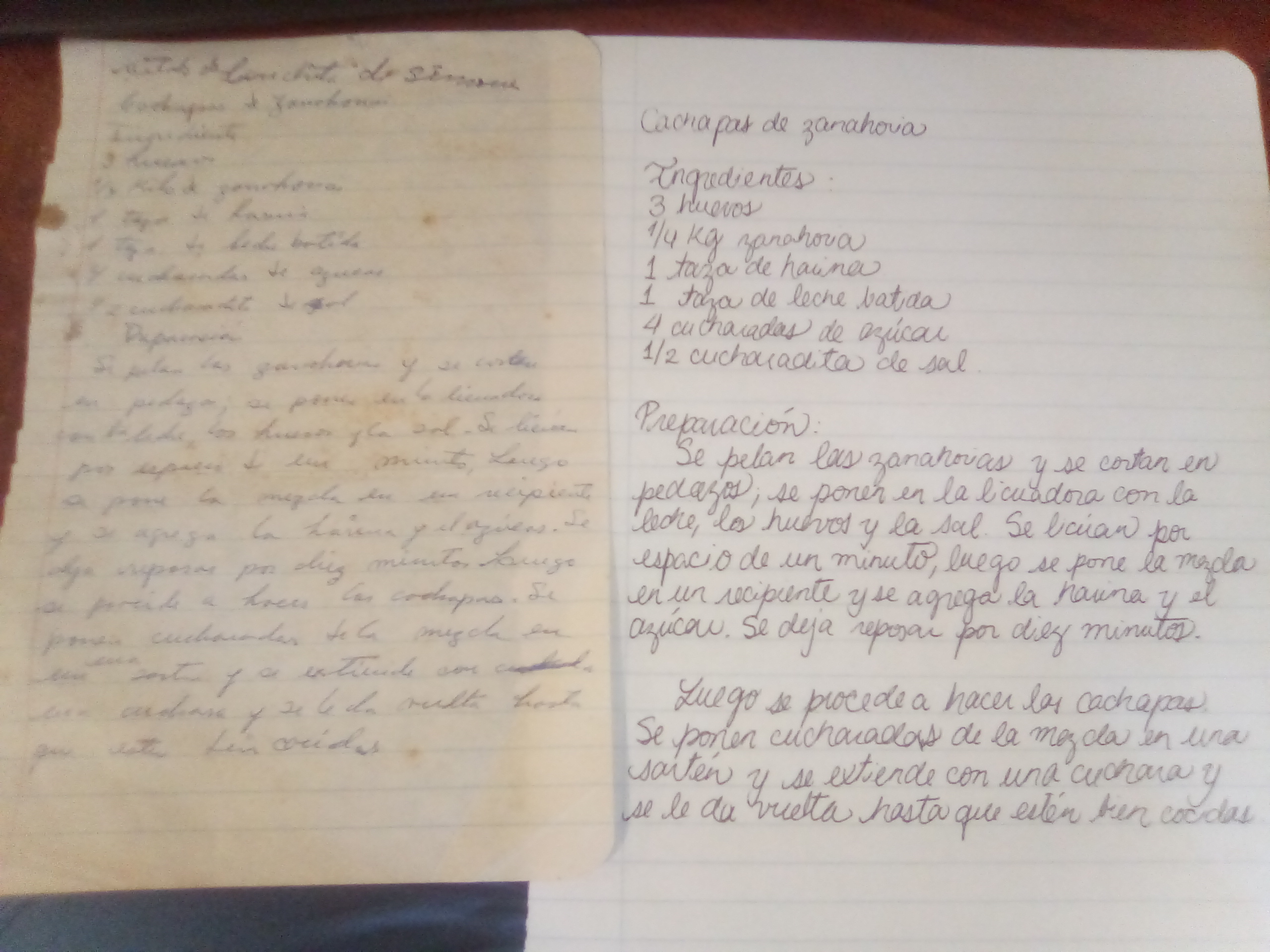 Una de las recetas es de cachapa de zanahoria y la otra de sopa de lentejas.