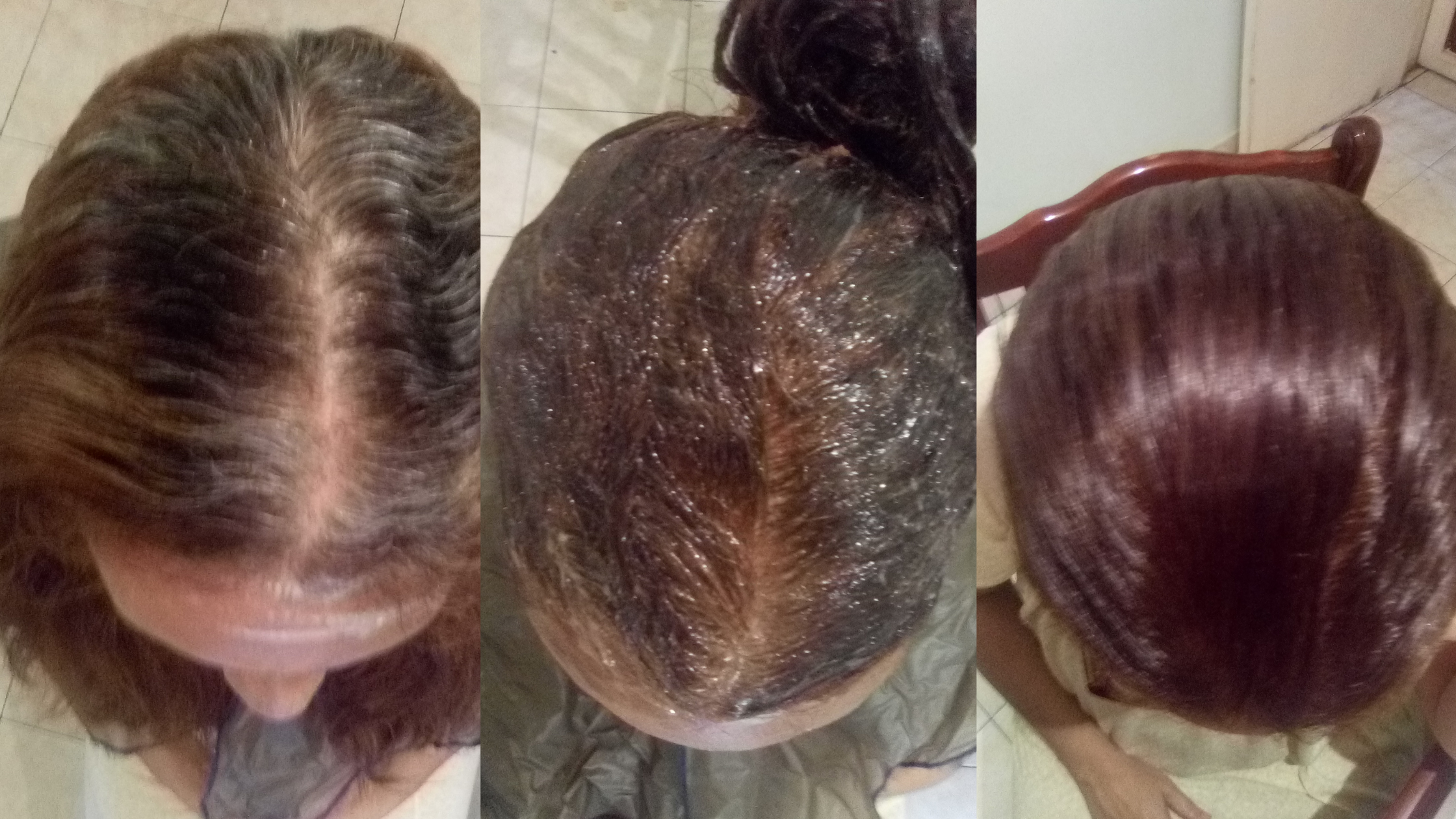 El proceso fue bastante sencillo porque ya tengo años de experiencia como peluquera de mi mamá 😅, separar el cabello y poco a poco con la ayuda de una brocha aplicar el producto, una vez que completé cada espacio con tinte, masajee un poco el cabello para evitar que quedaran espacios vacíos por allí.