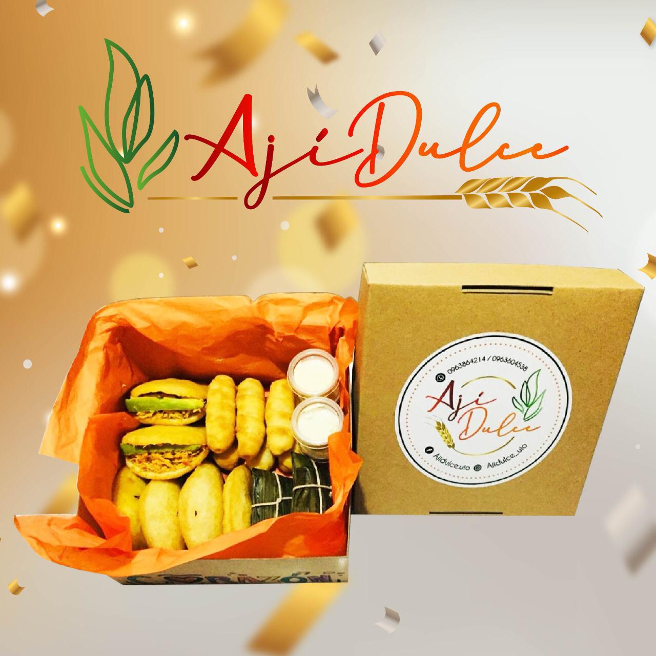 Así fue el resultado final de nuestra caja, una happy box llena de sabores deliciosos. Una caja llena de mensajes positivos y una deliciosa comida. Esta caja contenía 6 mini empanadas de carne, dos mini arepitas de pollo y aguacate, dos mini hallacas, y 6 tequeños o dedos de queso, mas ají y tres salsas de la casa.