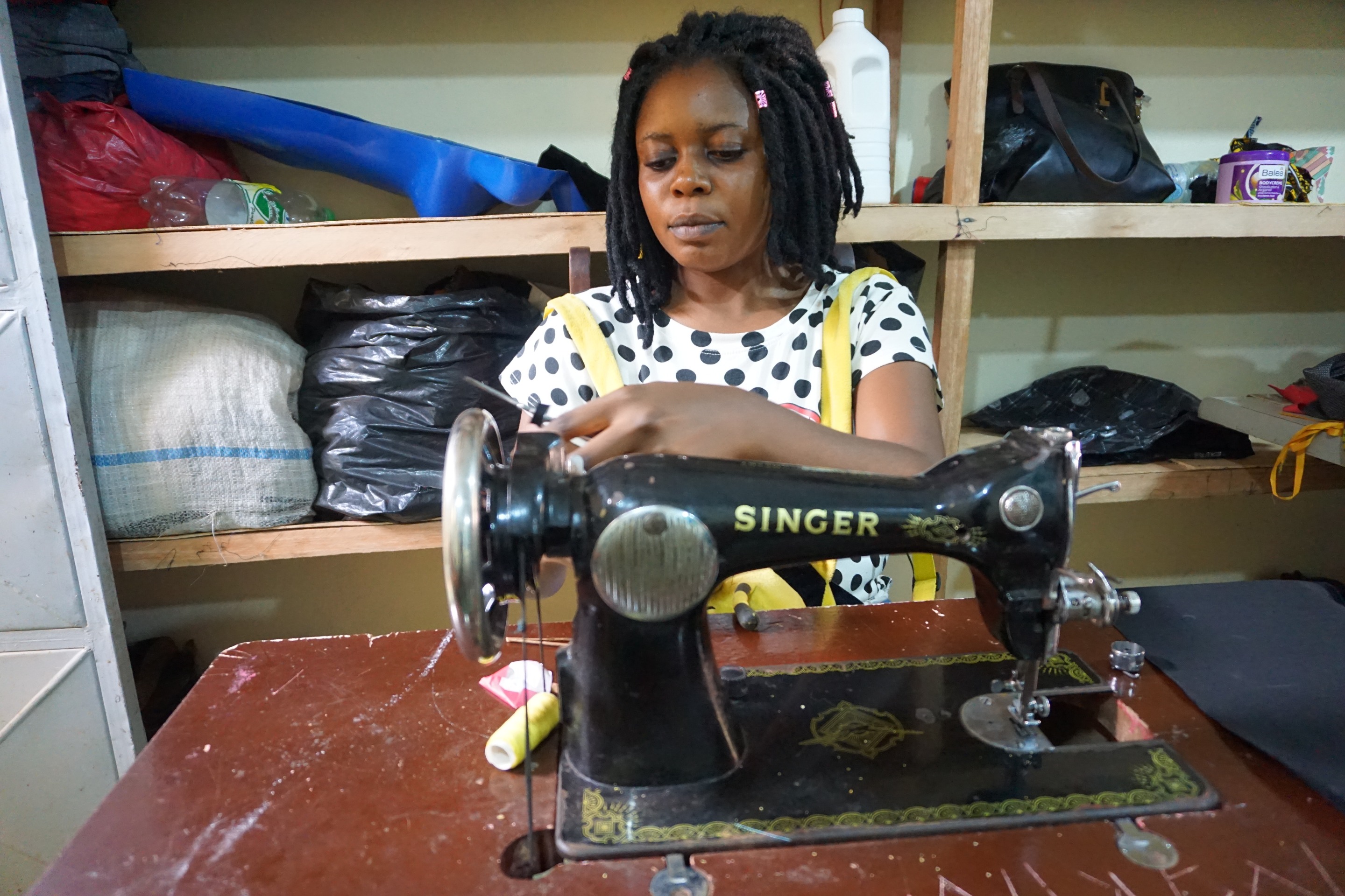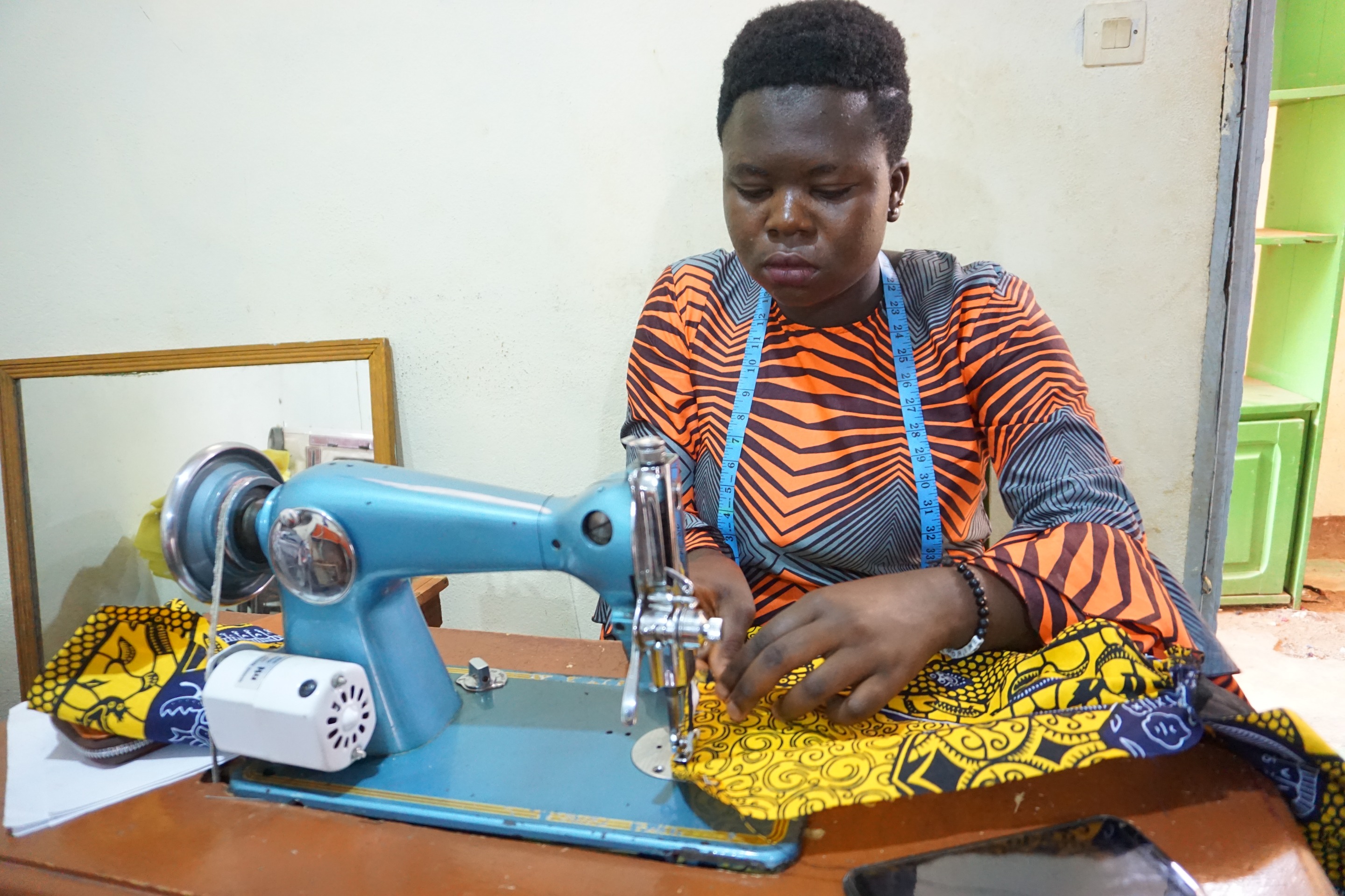 All trainees are tasked to always upcycle at least 1.5metre squared of textile offcuts into Pieces Fabric as well as upcycle 08 pounds of textile waste into diverse textile upcycyled products such as dolls, pillows, etc. The 1.5 meters squared and 08 pounds of textile waste upcycled will be used to sew at least one textile upcycled garment and make at least two pillows every week.