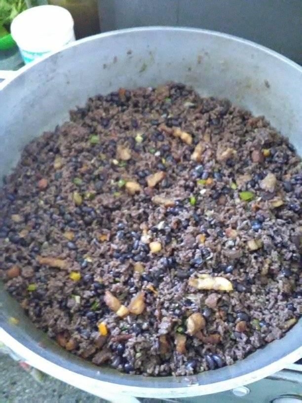 Se hicieron las 12:00 y me llama mi abuela para que viera como estaba haciendo unas caraotas a leña para preparar un Congrí que es un plato tipico de Cuba que esta hecho de caraotas con arroz aliñado y pulpa de cochino con chirrones fritos.