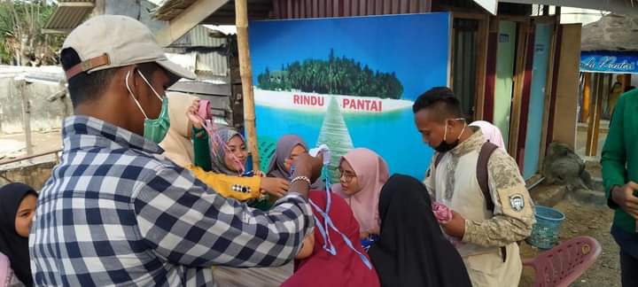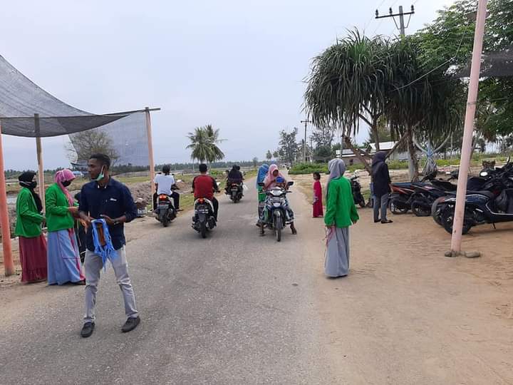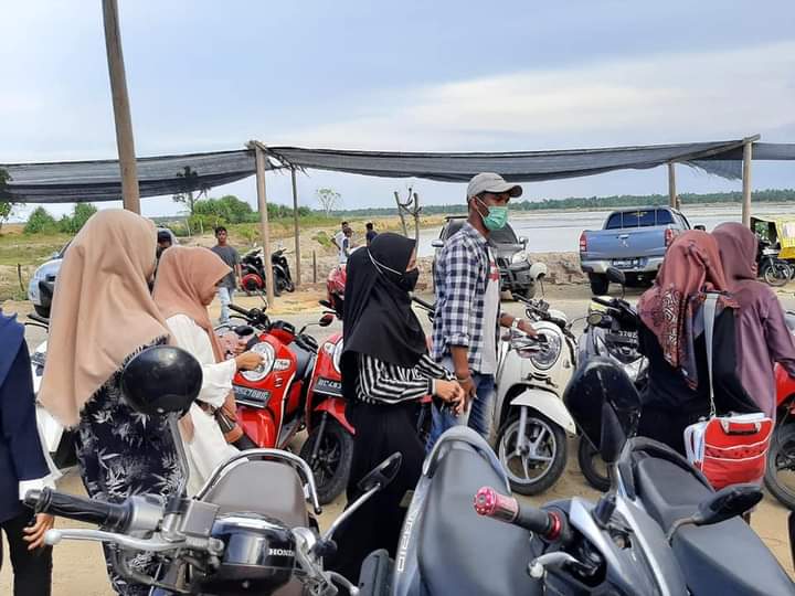 아침에 이야기를 시작으로 유명한 캠퍼스 중 한 곳에서 온 친구들과 학생들과의 활동이 있었기 때문에 최근 Ulee Rubeek 해변의 해안가에 세워진 관광지를 방문했습니다. 해변의 이름은 자주색 해변입니다.
