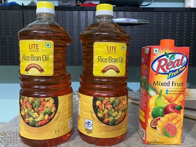 At 1 PM I have an one hour break, So I went outside and bought 2 bottles of Rice Bran oil(edible oil) and 1 bottle of Mixed fruit juice.