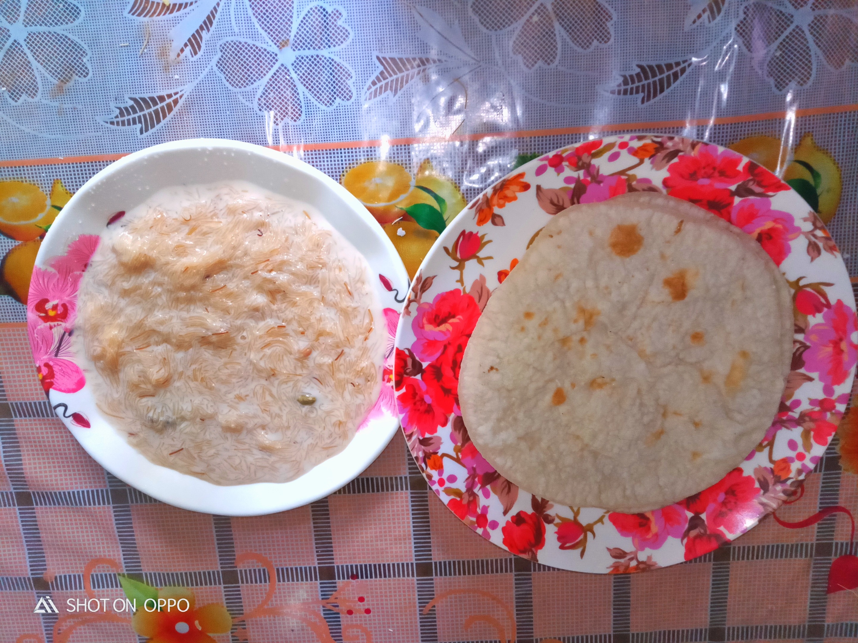 Then I sat at the table to eat the bread and semai cooked my mother.