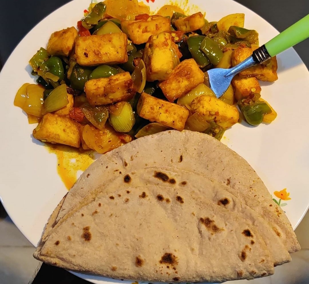 Yummy Chilly Paneer and Roti for the dinner.