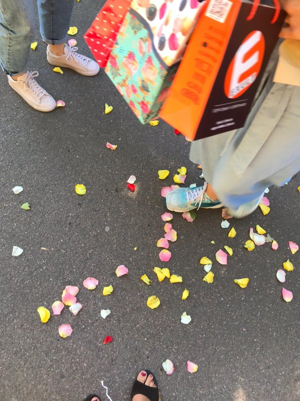 Во-первых, мы очень долго выбирали сам подарок, потому что дарили вместе с подругой одну вещь, поэтому по итогу остановились на кошельке. Потеряли только кучу времени на этой покупке. Потом заехали за цветами, но тут уже букет нашелся буквально с первого прилавка за пару минут.
