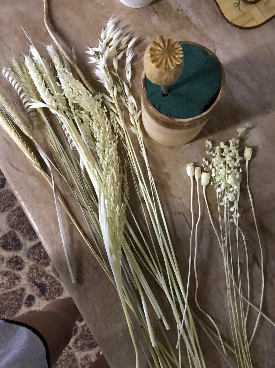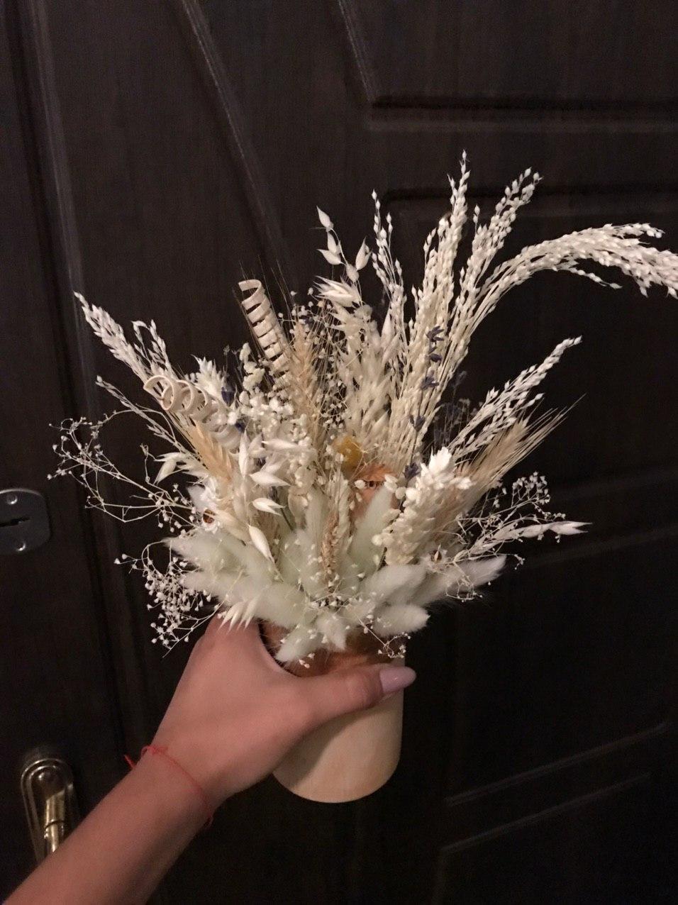 Вечером я занялась новым букетом из сухоцветов, которые пришли от нового продавца. Пробовали материалы в действии — для меня результат годится. С подругой решили, что берем паузу на неделю и уходим в творческий отпуск, чтоб вскоре вернуться с новыми идеями и новыми силами.