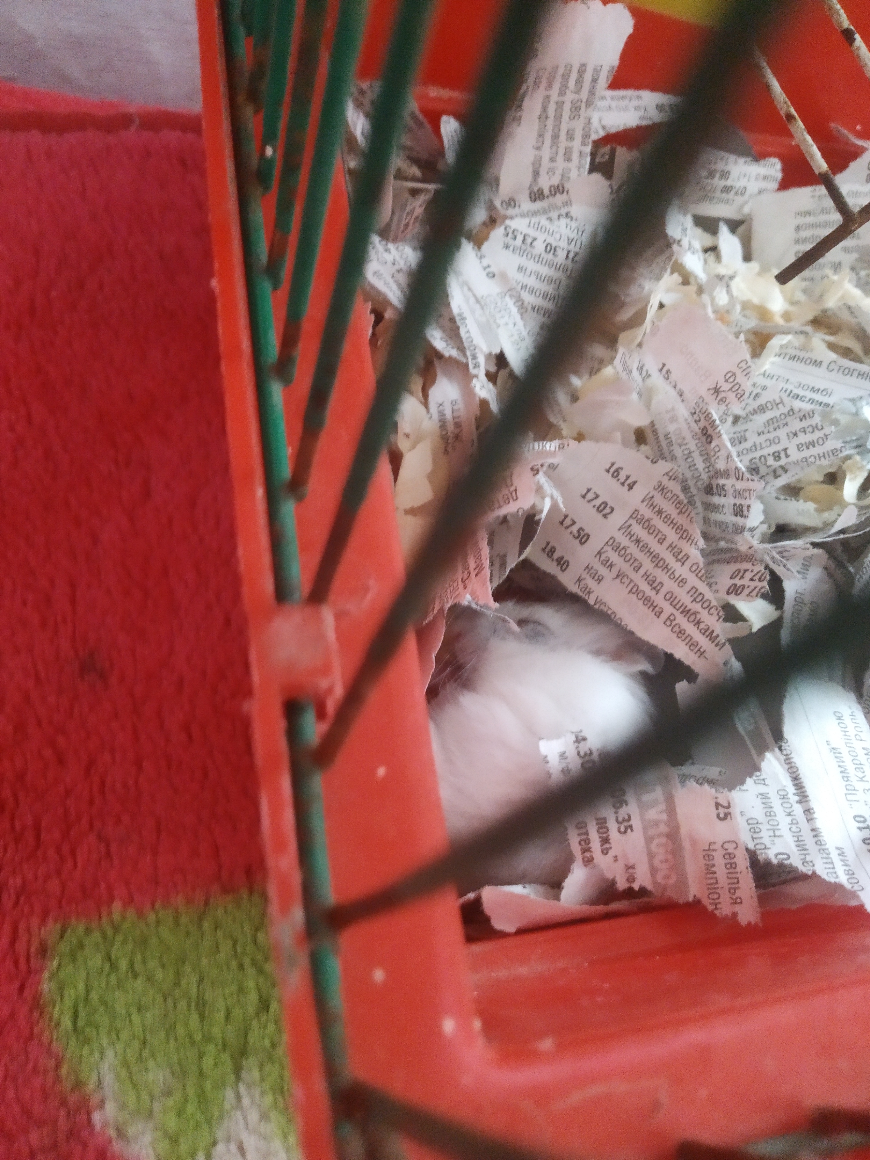Но как оказалось позже они проснулись и начали бегать в колесе и не давали мне уснуть. Я вынесла их дом вместе с ними в кухню и уже только тогда спокойно уснула.