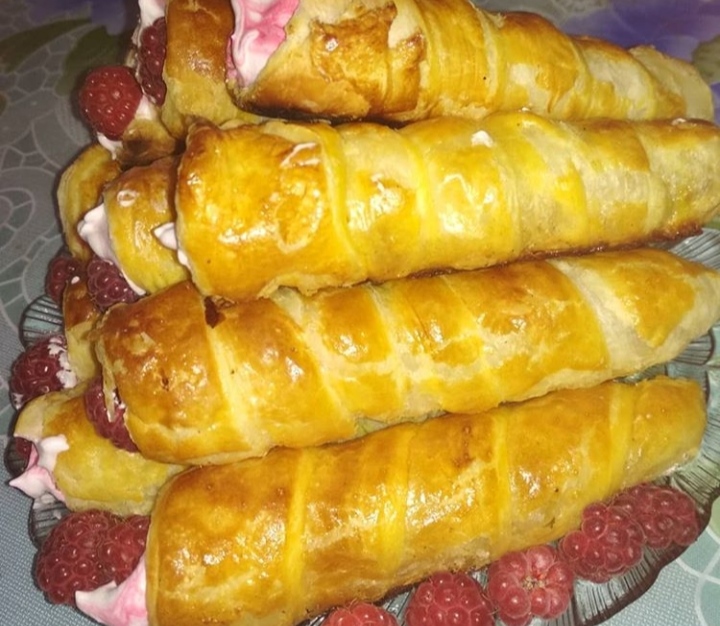 После этого мама попросила испечь сладкие трубочки со слоёного теста для моей любимой бабушки. Где-то часа два у меня ушло на готовку. Получилось очень красиво и вкусно.