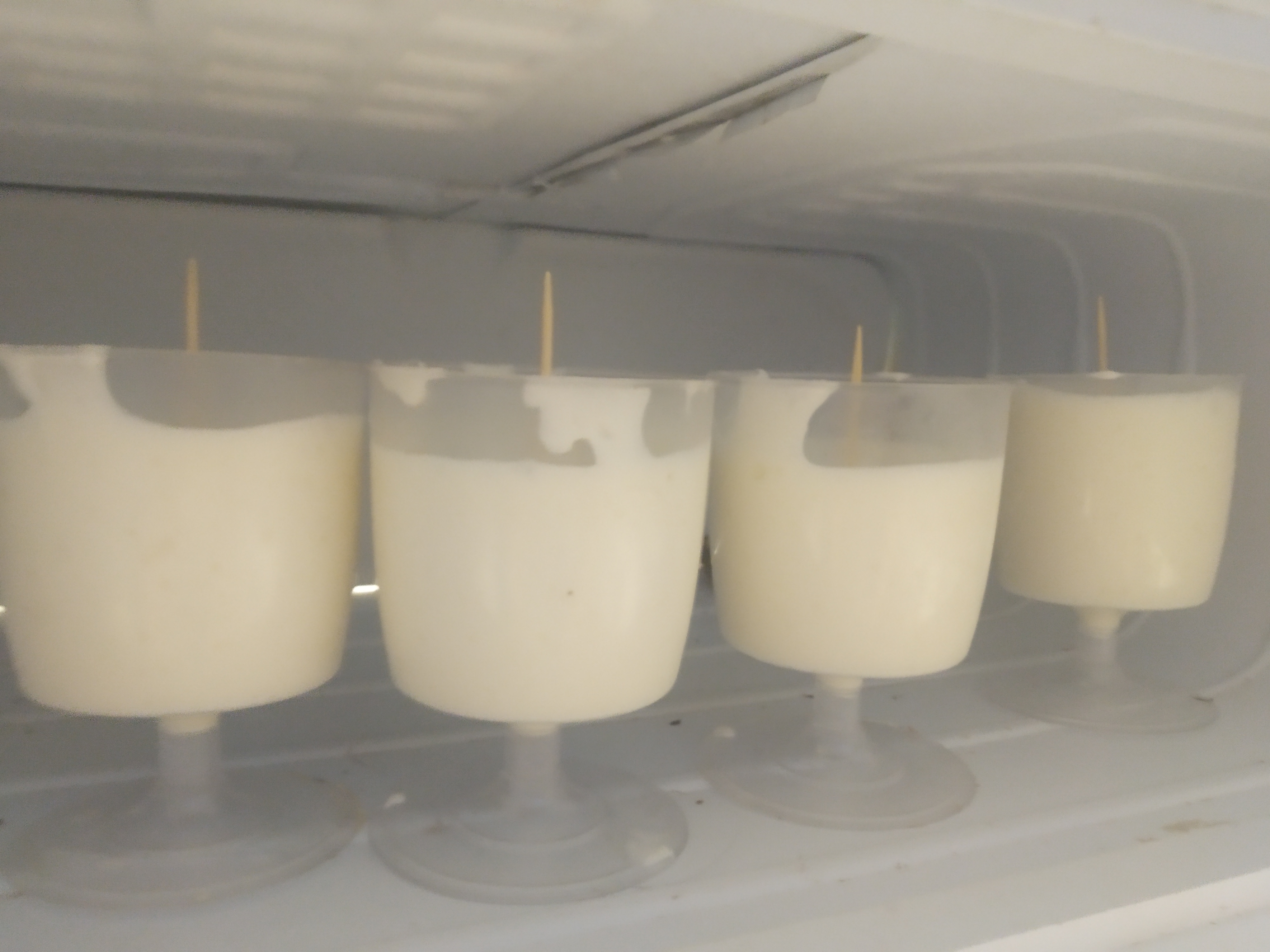 Убравшись, пошла в душ, а потом решила сделать, то мороженое с порошка, что купила недавно. Сначала, я взяла стакан молока, как написано в инструкции, и залила им этот порошок. После чего доставляє наш миксер и начала сбивать до густой смеси. После чего разложила смесь в стаканчики и поставила в морозилку.