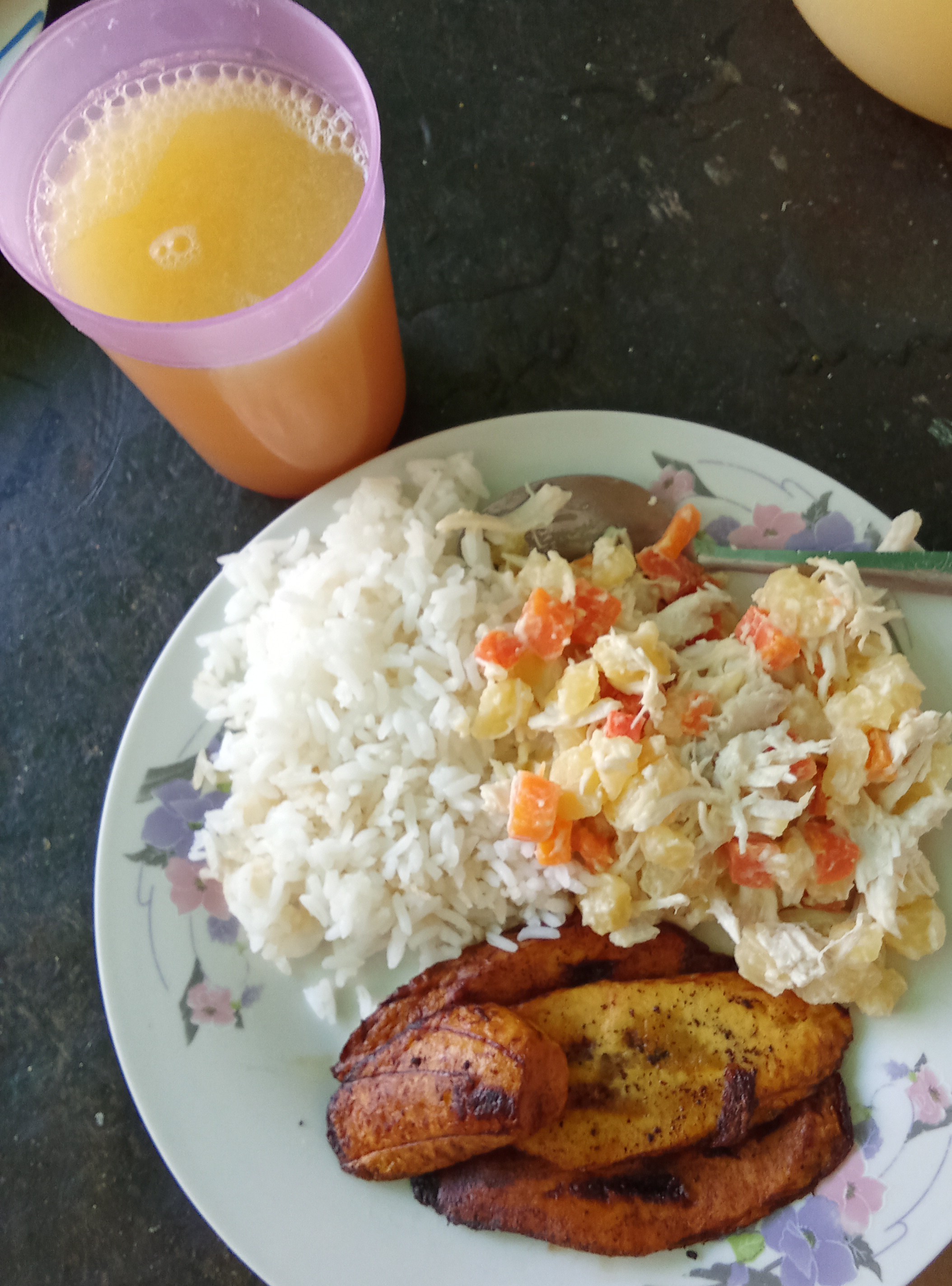 Al terminar la película ayude a mi mamá con el almuerzo, entonces me puse a esmechar el pollo para hacer un deliciosa ensalada, también hice arroz y tajadas, no se ustedes pero yo amo la ensalada de gallina