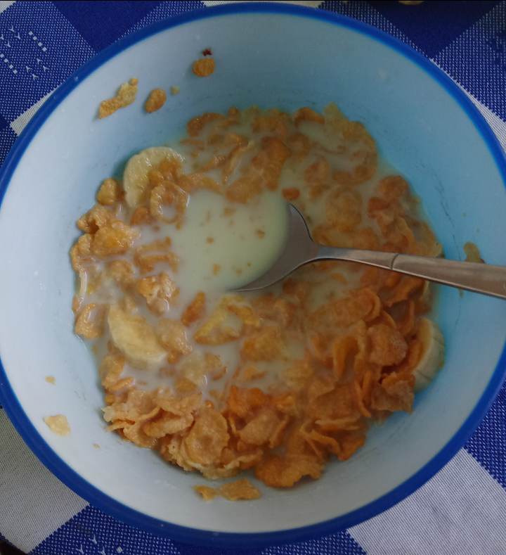 Un desayuno un poco sencillo al momento de realizarlo pero que a mí en lo personal me encanta, cereales, leche y le agregue un cambur, después de desayunar me puse a ver una película que superó mis expectativas muy muy linda y te deja una enseñanza increíble se llama "Dios NO esta muerto" la pueden encontrar en Netflix es muy linda de verdad se las recomiendo.