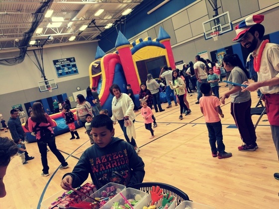 One of the projects we do is a school carnival fundraiser. We (meaning me, another guy and sometimes my hubs) bring all the items necessary to set up a carnival in their gym (including a bouncy house), they charge/ask for donations at the door, the kids (and adults) play for a couple of hours, win prizes, and the schools keep all the proceeds.