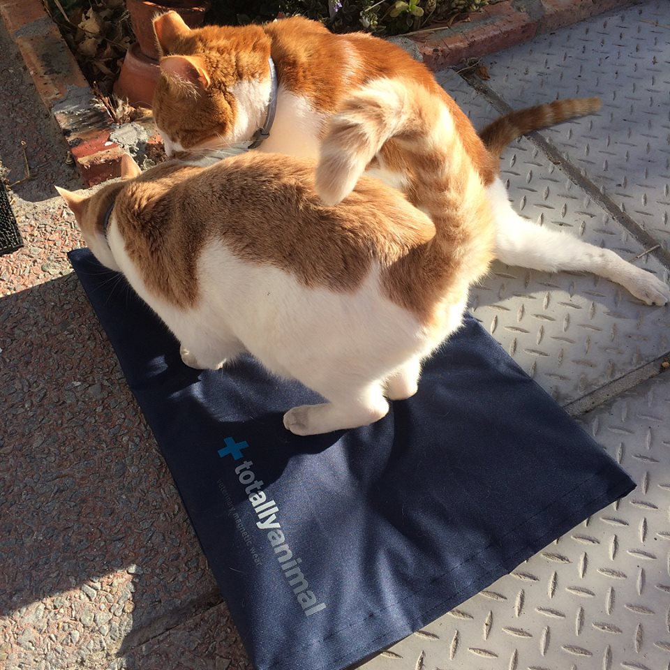 The mat stays on Teddy's favorite napping spot on the ground where he can easily get to it.