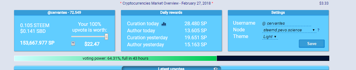 pues corazon ya te contestaste tu misma, ellos quieren seguidores que les votes sus post, y votan al azar a la gente, pero me pregunto??? con toda la cantidad de sp que tiene cervante por que no vota a todo el mundo, mira te enseño y lo veas con tus propios ojos el sp que tiene y cuanto da cuando vota