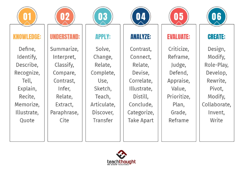 Bloom’s Taxonomy’s verbs('power verbs' or 'thinking verbs')은 강력한 교육 설계 도구입니다.