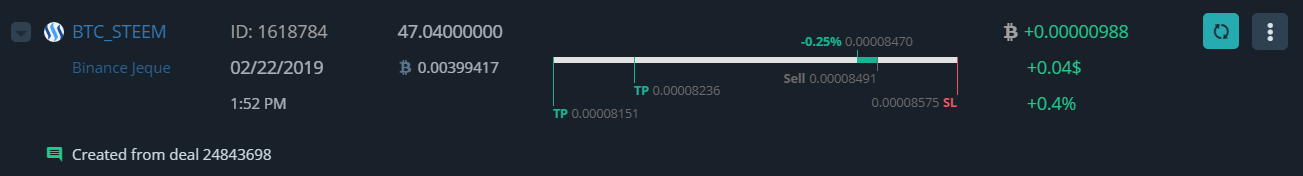 This is the only trade showing green in my PF today... It is a short of steem, i dont expect it to last green, soon the pump will start again, but i still have hopes of buying back below 8000 satohis.