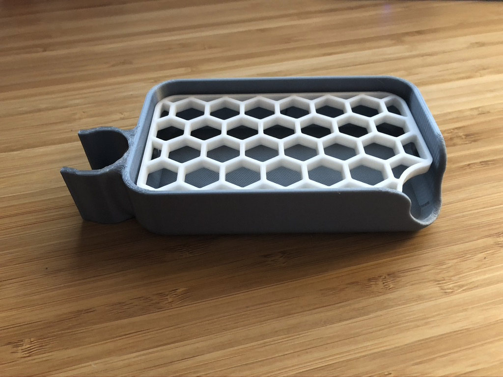 My wife wanted a second soap dish in our shower. So I looked on Thingiverse, found a nice design and printed it.