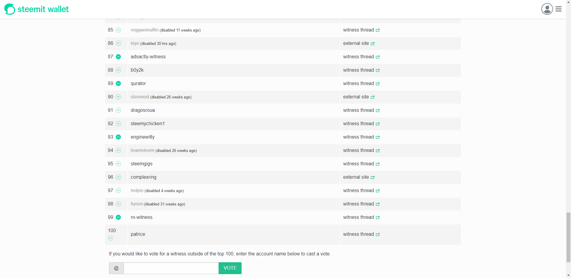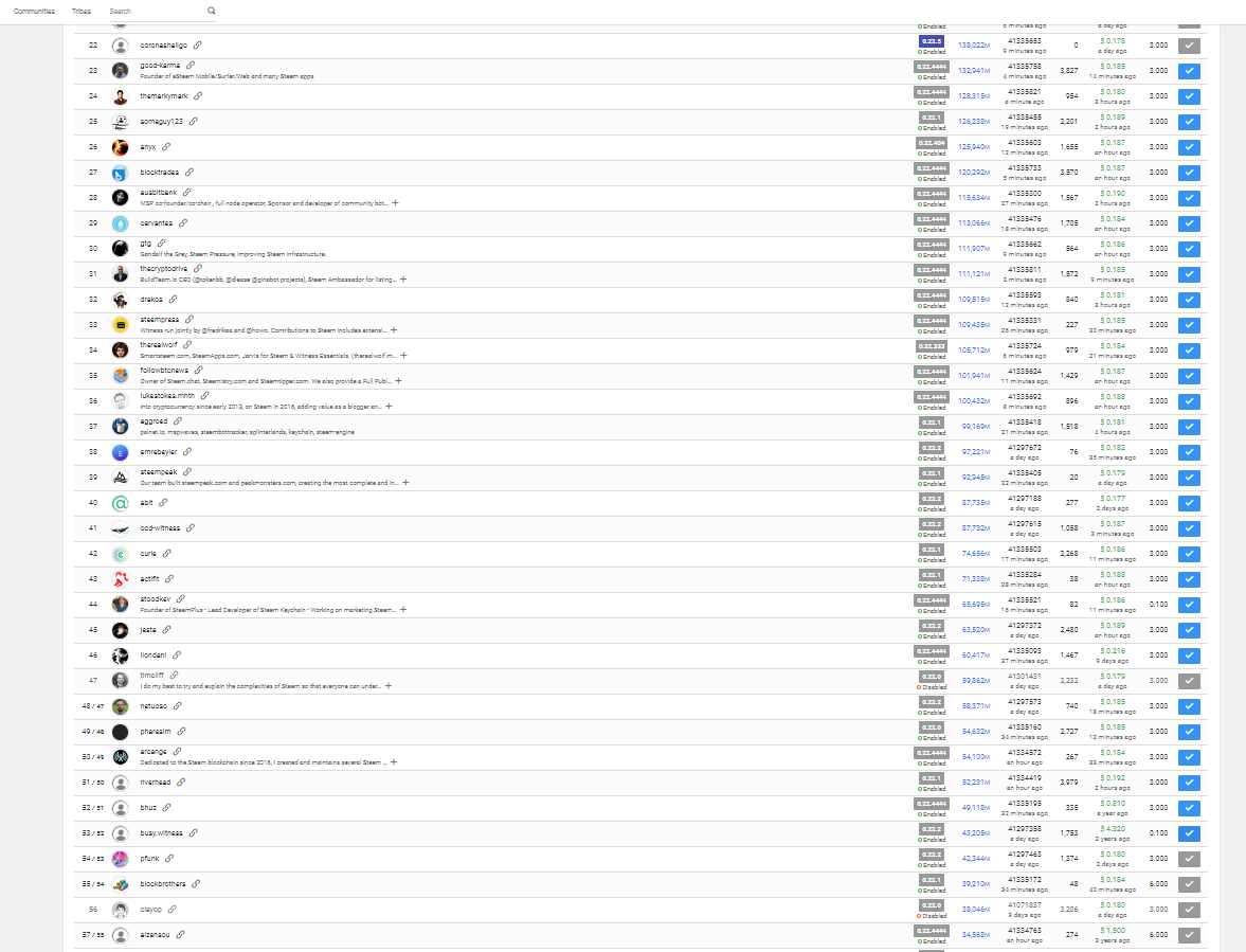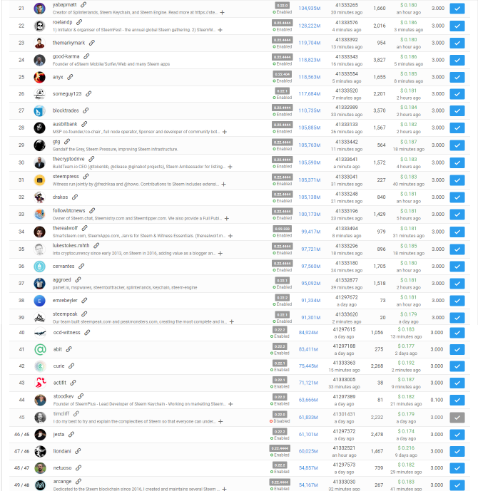 I Voted for any Witness I could find which was running v22.1 or earlier. I could only find 19 within the top 100. I realize that this is probably not a popular stance, but regardless of what anyone feels about Justin, his response, or his behavior before... I feel like there were mistakes made all around, and having everyone only blame Justin will not solve the issue.