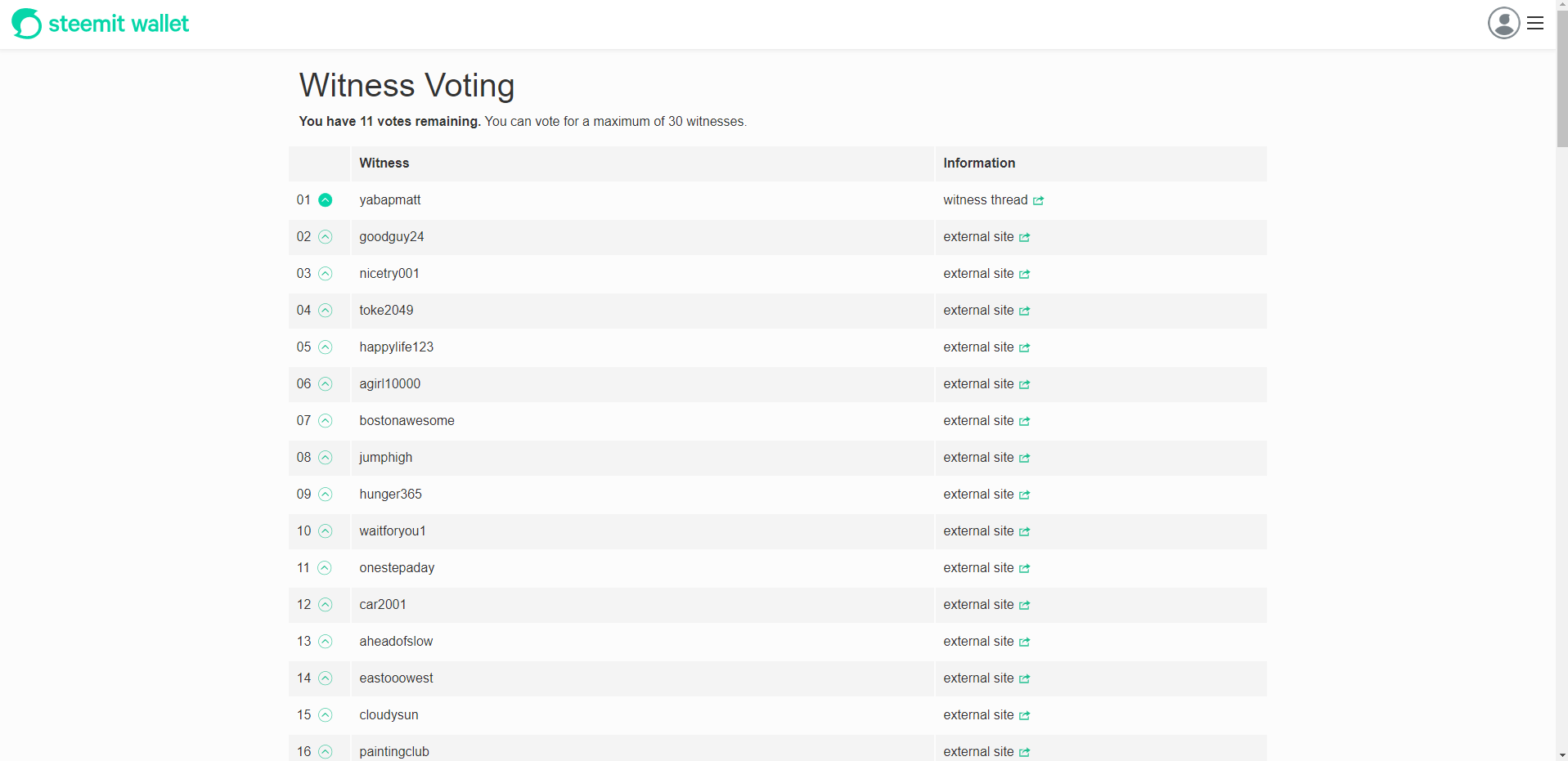 Hi everyone! I am here on the Steem blockchain today to update my Witness votes and vote fro my remaining 4! I had 4 votes left but I have to take off the ones I was voting for that are disabled and no longer active! Once I did that I voted everyone from number 21 and below. Right now starting with yabapmatt in the 21st spot( I already voted for him and Aggroed a long time ago)! It is very important right now to show your support for our beloved Steem blockchain. I was one of the people who initially was excited Justin Sun bought Steemit as I thought he would make it great again, LOL! Now, I have to show my love and support for the Steem community! We are strong people who are not just going away. We stay and fight until death, lol! Not everyone gets along in the Steem community as in life itself, this is normal. However, I do believe we can all come together in times like these to help us as all as a whole community! It is wartime and I am with the Steem community, not Tron. It is funny but it is serious as well. The Steem blockchain has created so many opportunities for me and I truly love it. I want to protect it in any small or big way I can.
