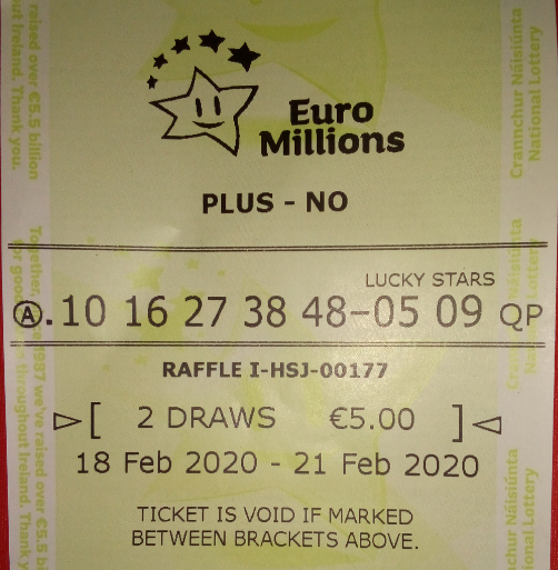 Each week we are purchasing a ticket for the Euro Millions draw. The ticket will run for two draws. The first draw to take place on Tuesday and the second on Friday. The ticket for this week is already running with random selected numbers. (Quick Pick)