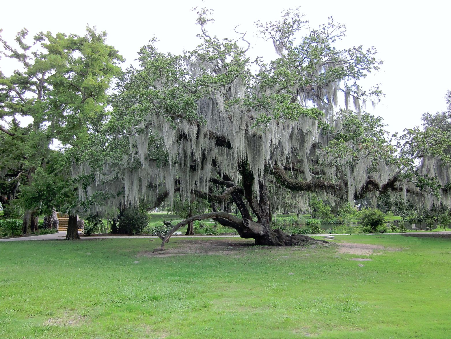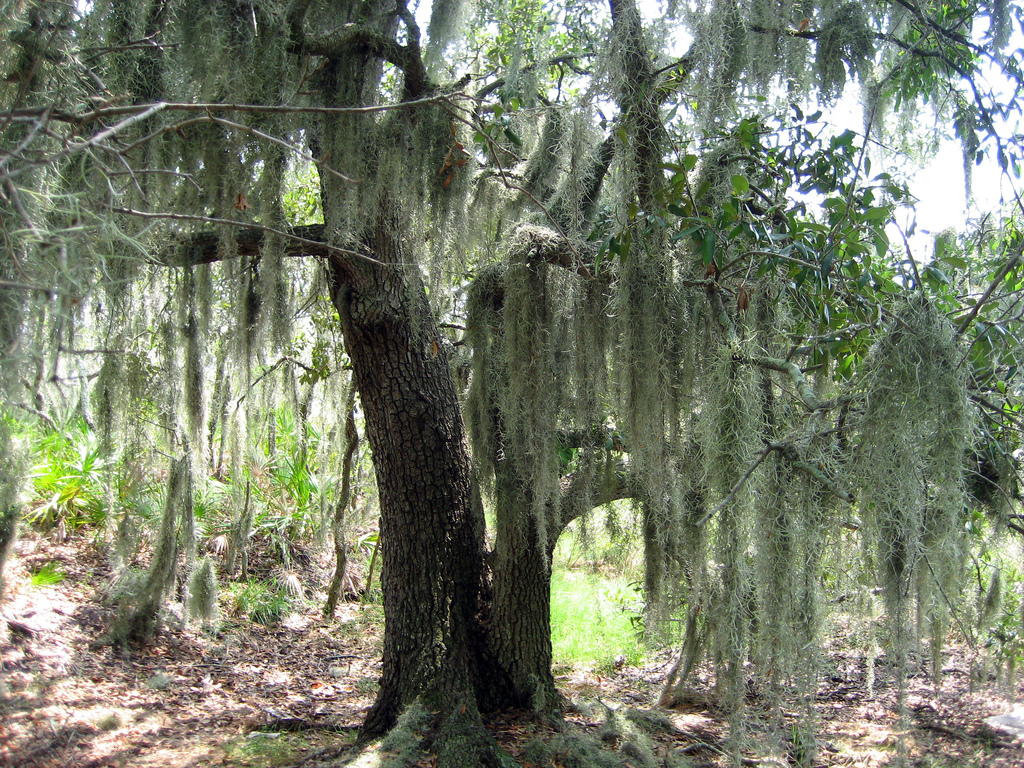 While it rarely kills the trees, it lowers their growth rate by reducing the amount of light to a tree’s own leaves. It also increases wind resistance, which can be fatal to the host tree in a hurricane. In the southern United States, the plant seems to show a preference of growth on Southern Live Oak (Quercus virginiana) or Bald Cypress (Taxodium distichum) because of these trees’ high rates of foliar mineral leaching (calcium, magnesium, potassium, and phosphorus) providing an abundant supply of nutrients to the plant, but it can also colonize other tree species such as Sweetgum (Liquidambar styraciflua), crepe-myrtles (Lagerstroemia spp.), other oaks and even pines.